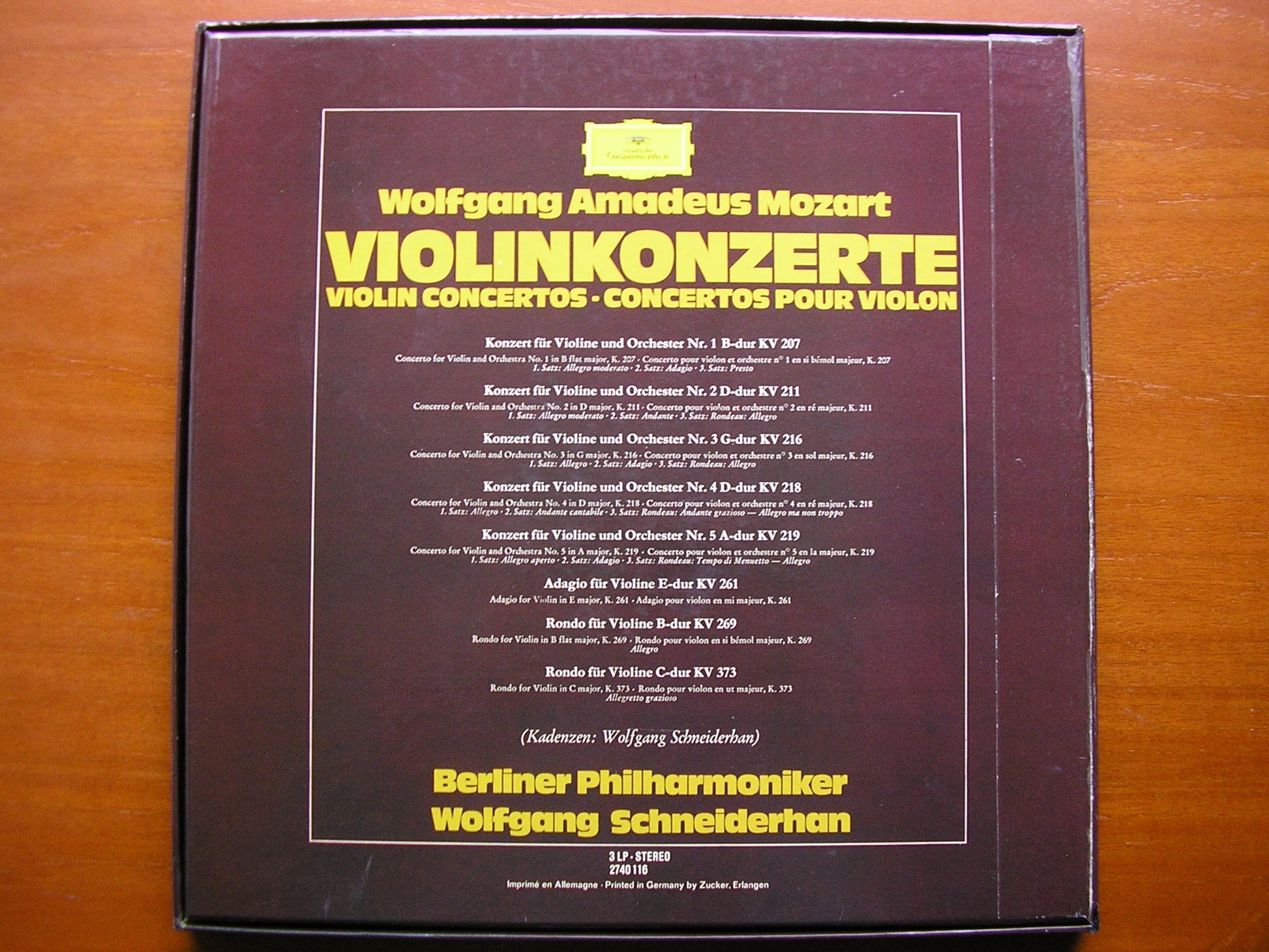 2740 116  MOZART: THE VIOLIN CONCERTOS / ADAGIO K261 / RONDOS K269 & K373  WOLFGANG SCHNEIDERHAN / BERLIN PHILHARMONIC ORCHESTRA