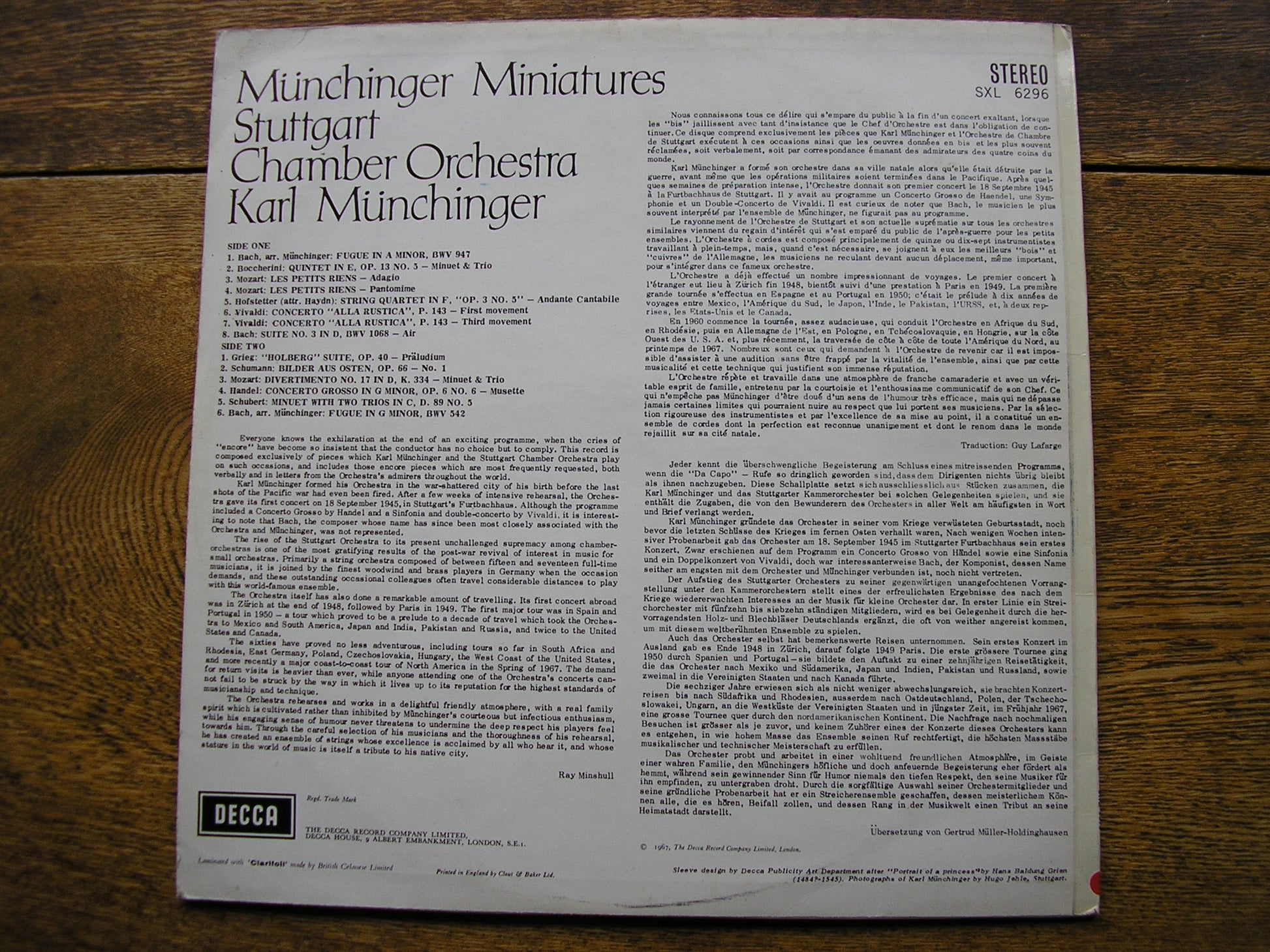 MUNCHINGER MINIATURES KARL MUNCHINGER / STUTTGART CHAMBER ORCHESTRA SXL 6296