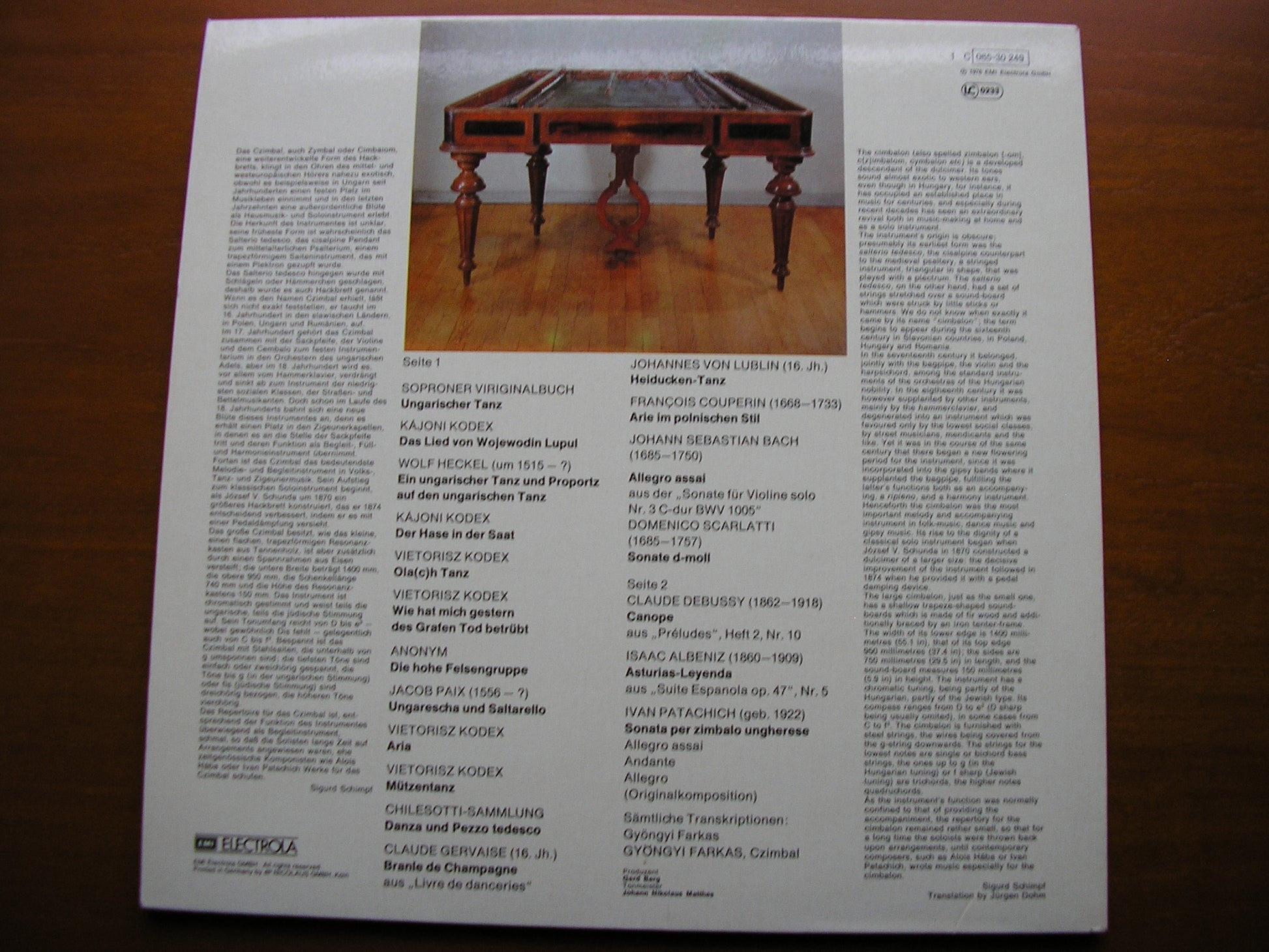 065 30 249  MUSIC FOR CIMBALON: KODEX / LUBLIN / BACH / COUPERIN / DEBUSSY / ALBENIZ / SCARLATTI / PATACHICH     GYONGYI FARKAS