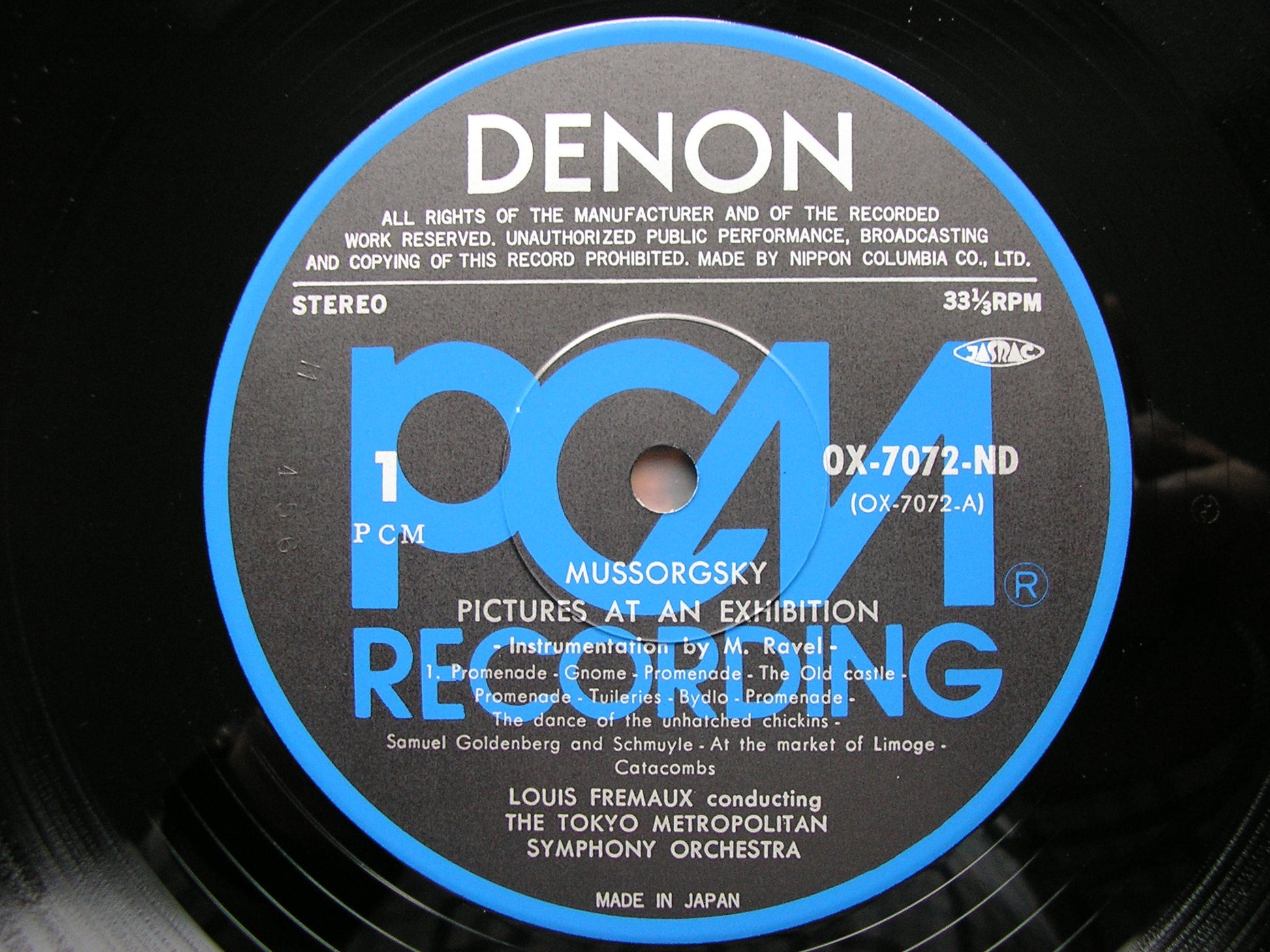 MUSSORGSKY: PICTURES AT AN EXHIBITION / RAVEL : PAVANE LOUIS FREMAUX / TOKYO METROPLITAN SYMPHONY OX-7072-ND