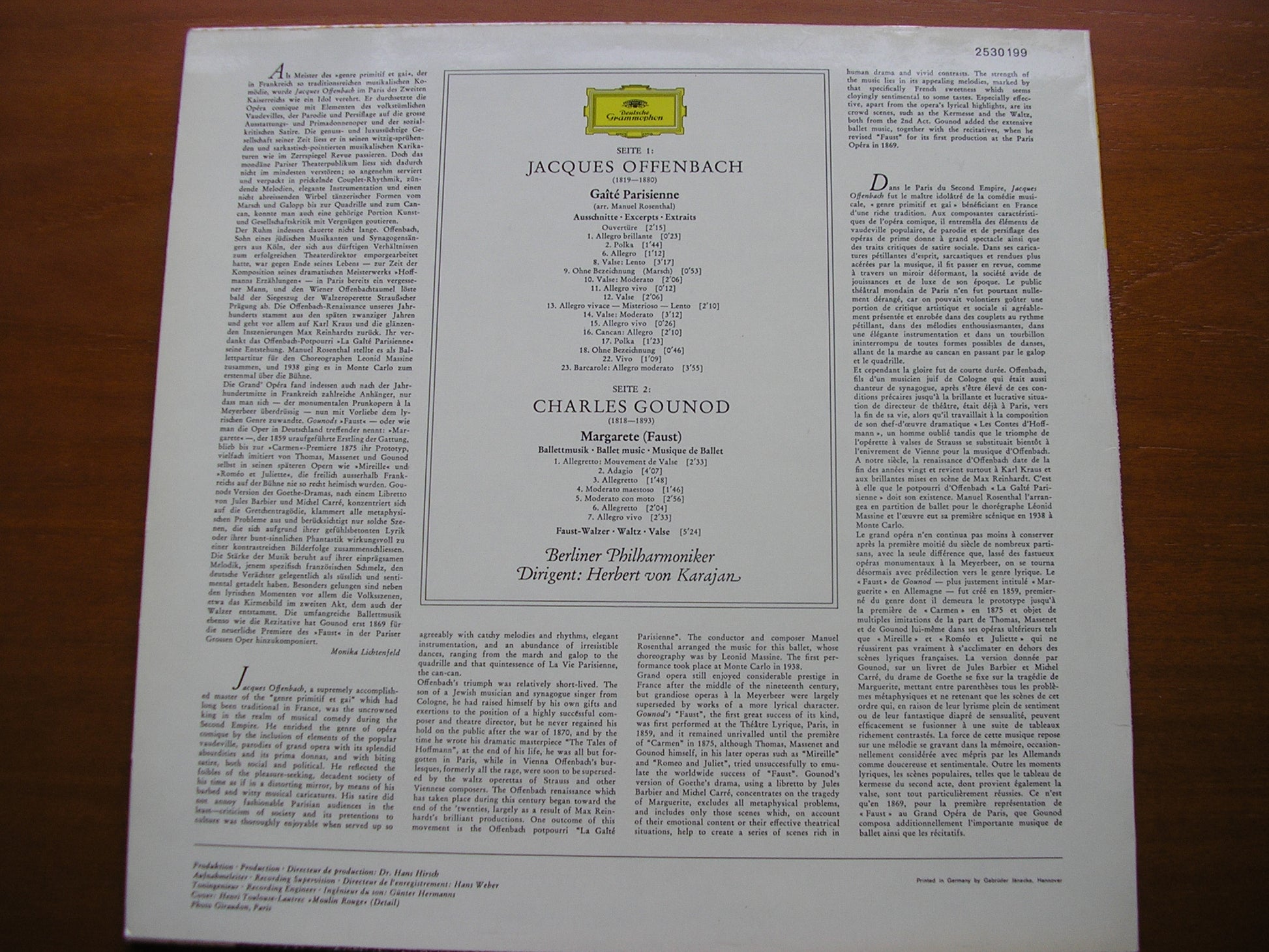 2530 199  OFFENBACH: GAITE PARISIENNE / GOUNOD: FAUST Ballet Music     HERBERT VON KARAJAN / BERLIN PHILHARMONIC ORCHESTRA