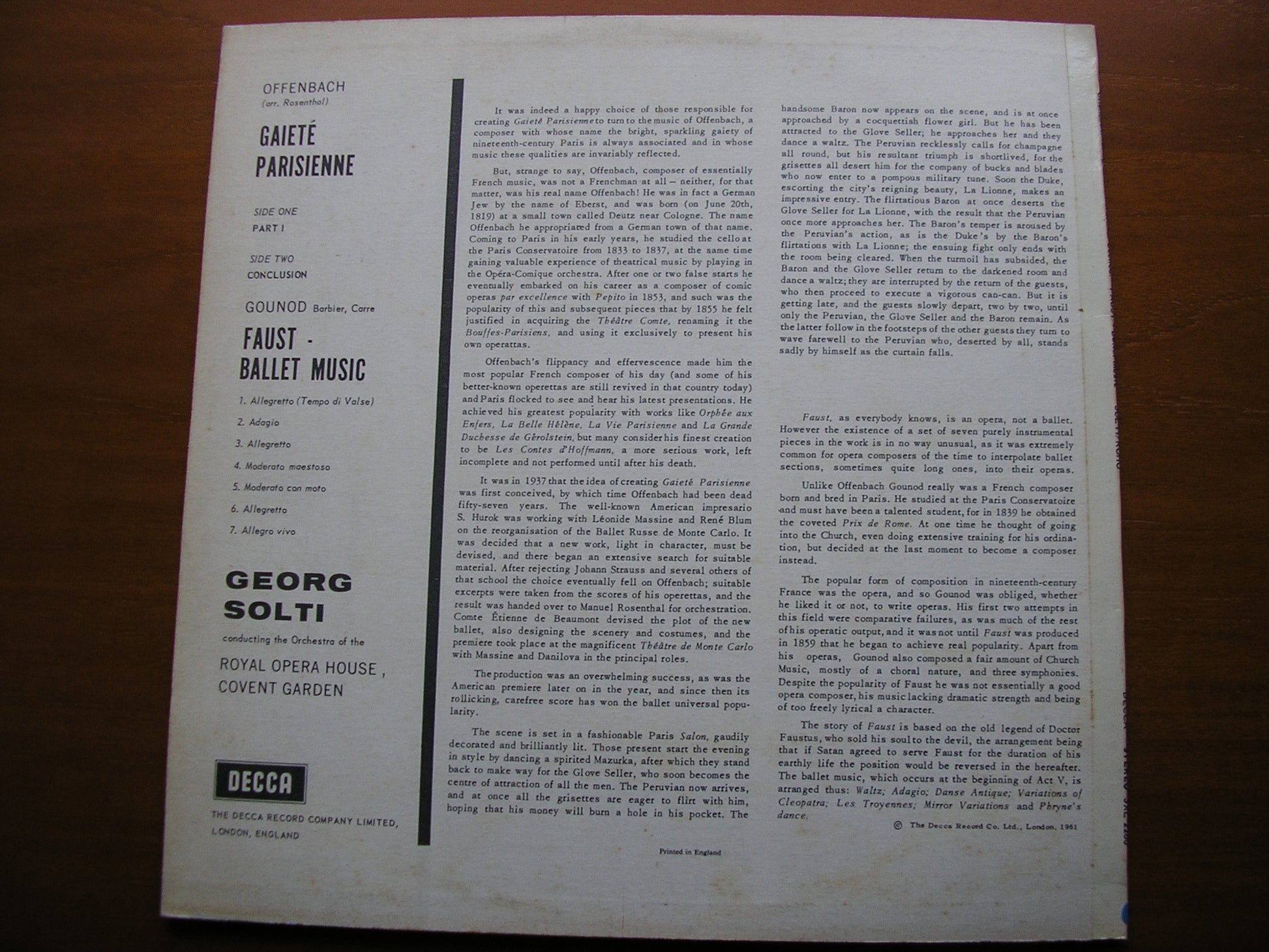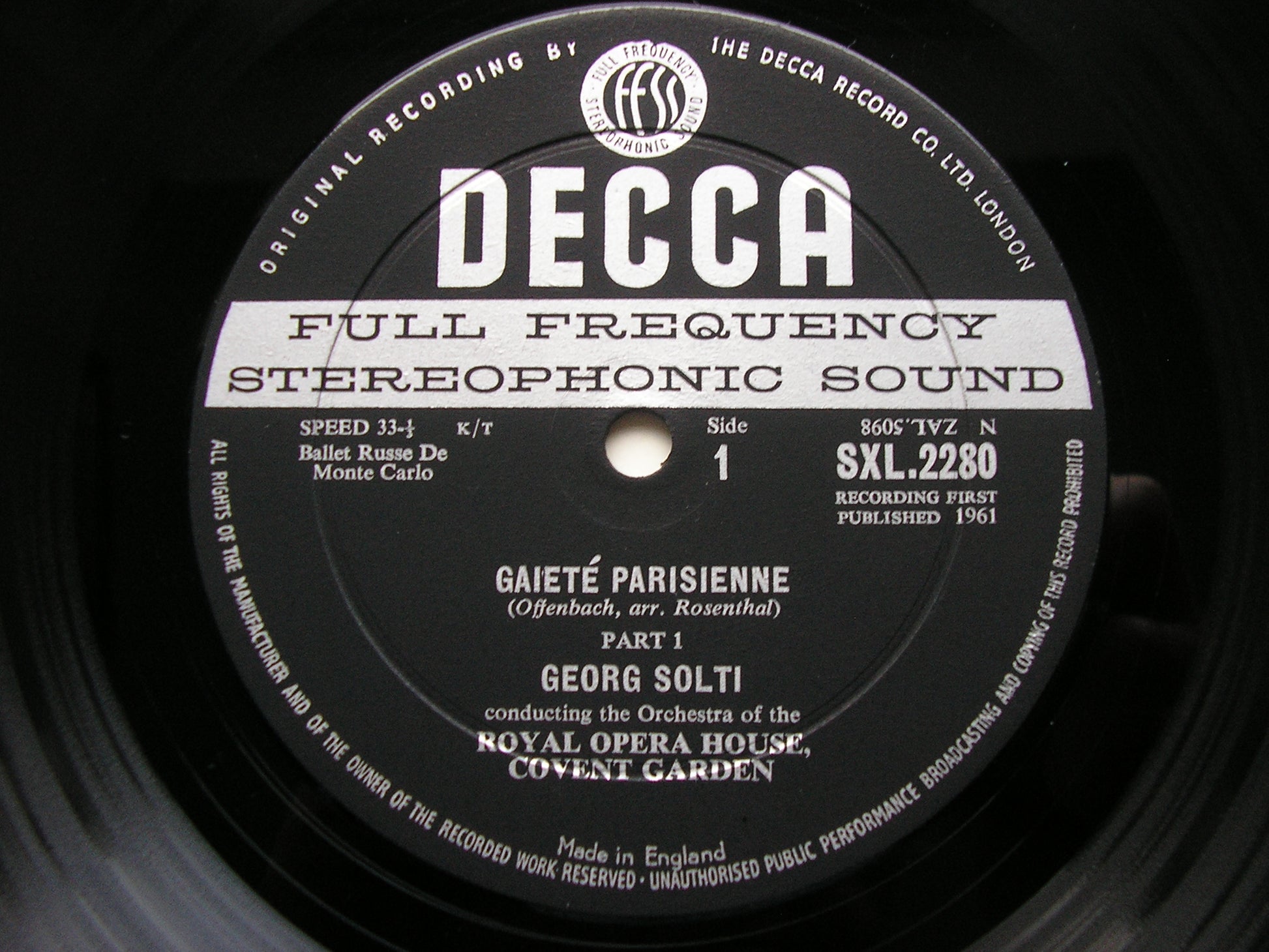 SXL 2280  OFFENBACH: GAITE PARISIENNE / GOUNOD: FAUST Ballet Music    GEORG SOLTI / ORCHESTRA OF THE ROYAL OPERA HOUSE COVENT GARDEN
