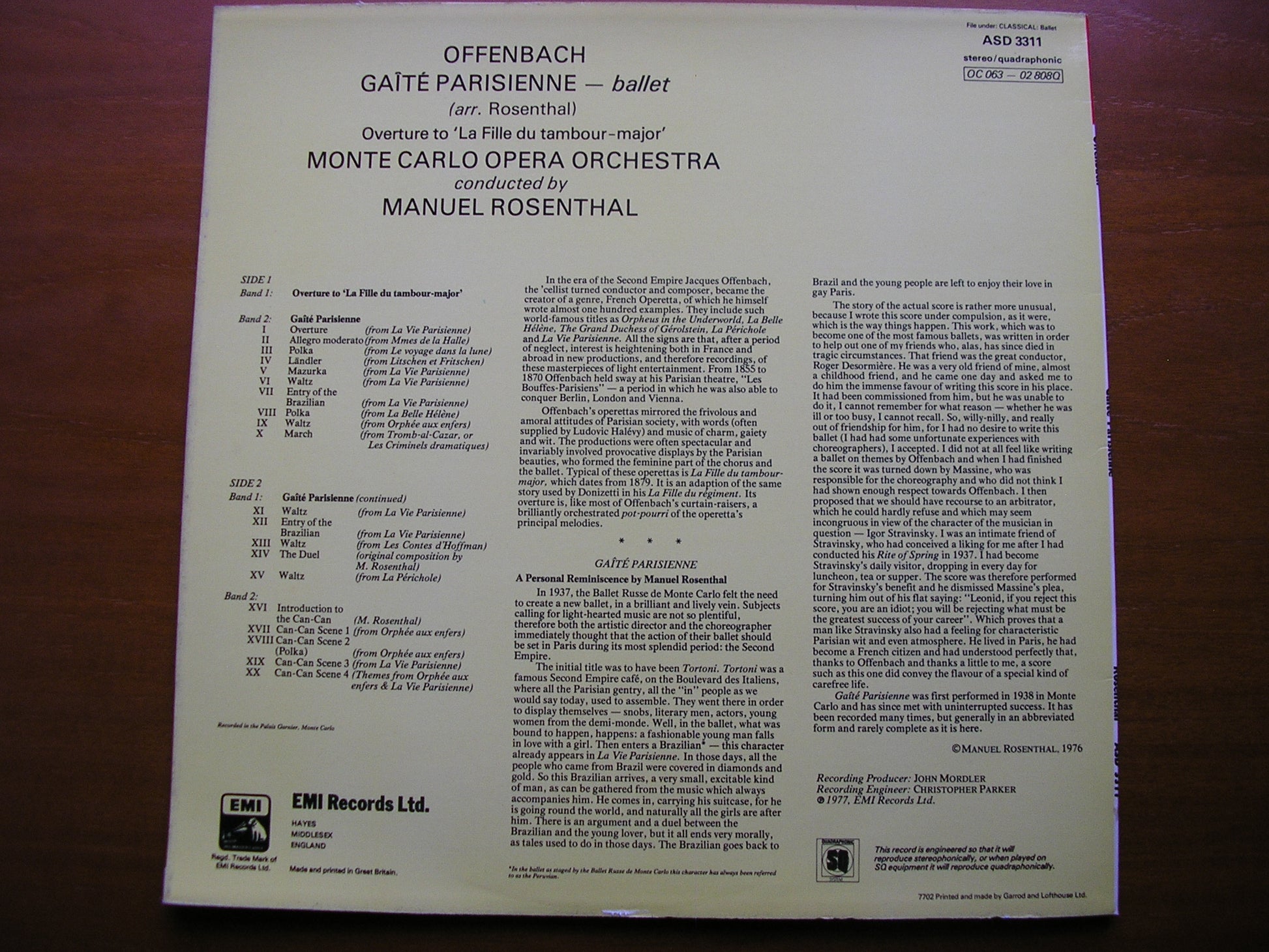 ASD 3311  OFFENBACH: GAITE PARISIENNE / OVERTURE     MANUEL ROSENTHAL / MONTE CARLO OPERA ORCHESTRA