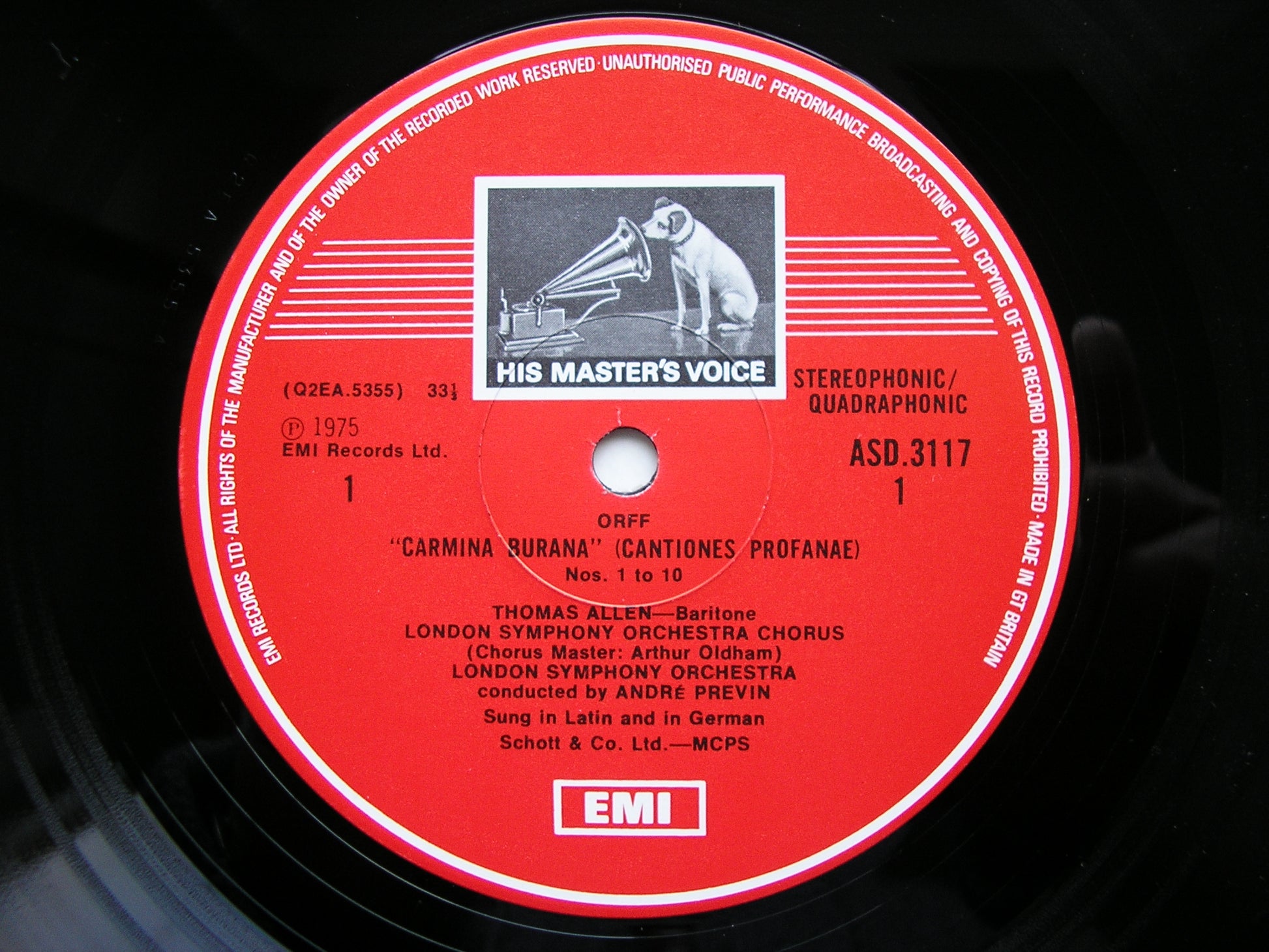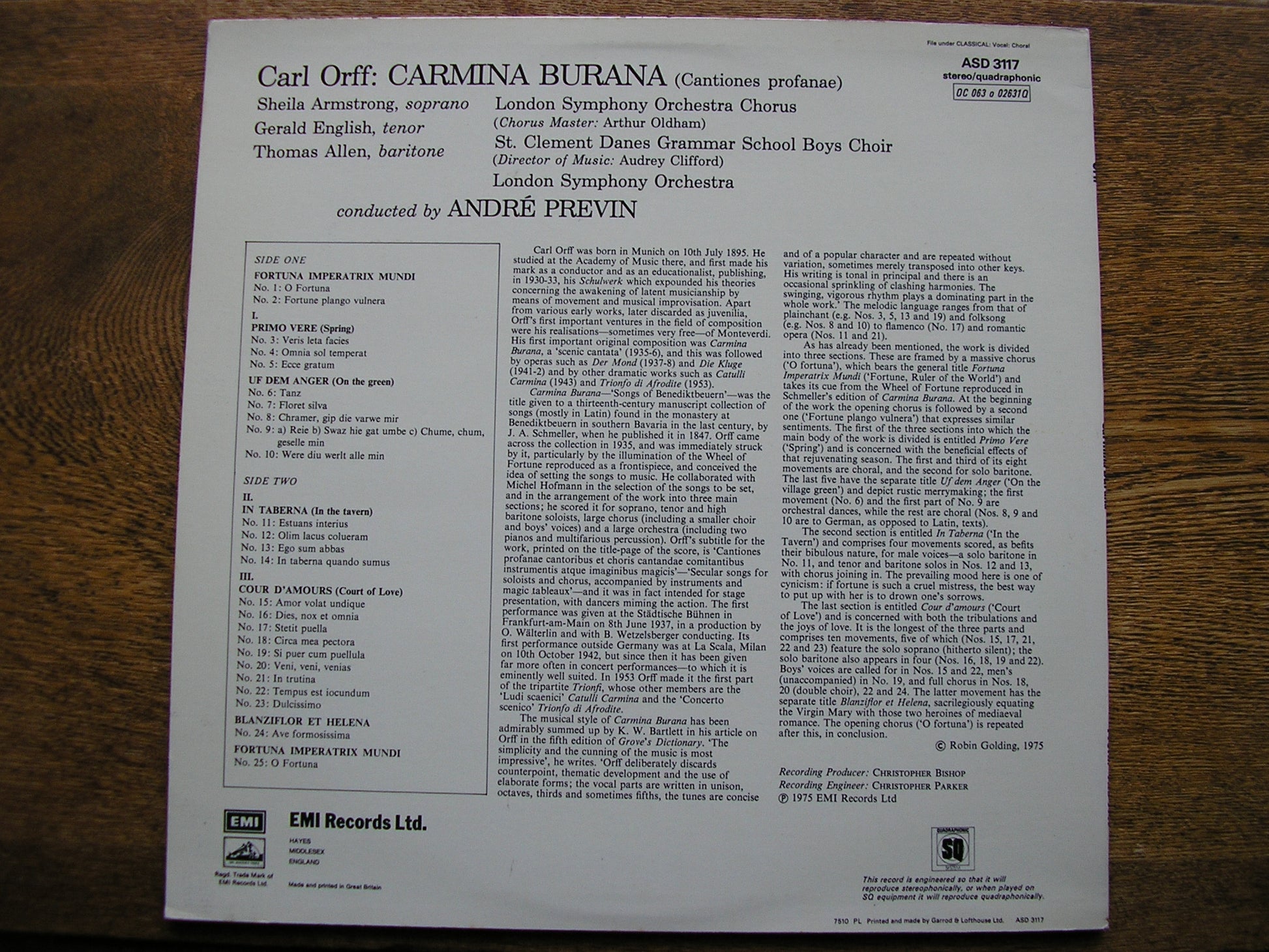ASD 3117 ORFF: CARMINA BURANA  SHEILA ARMSTRONG / GERALD ENGLISH / THOMAS ALLEN / LONDON SYMPHONY ORCHESTRA  / ANDRE PREVIN
