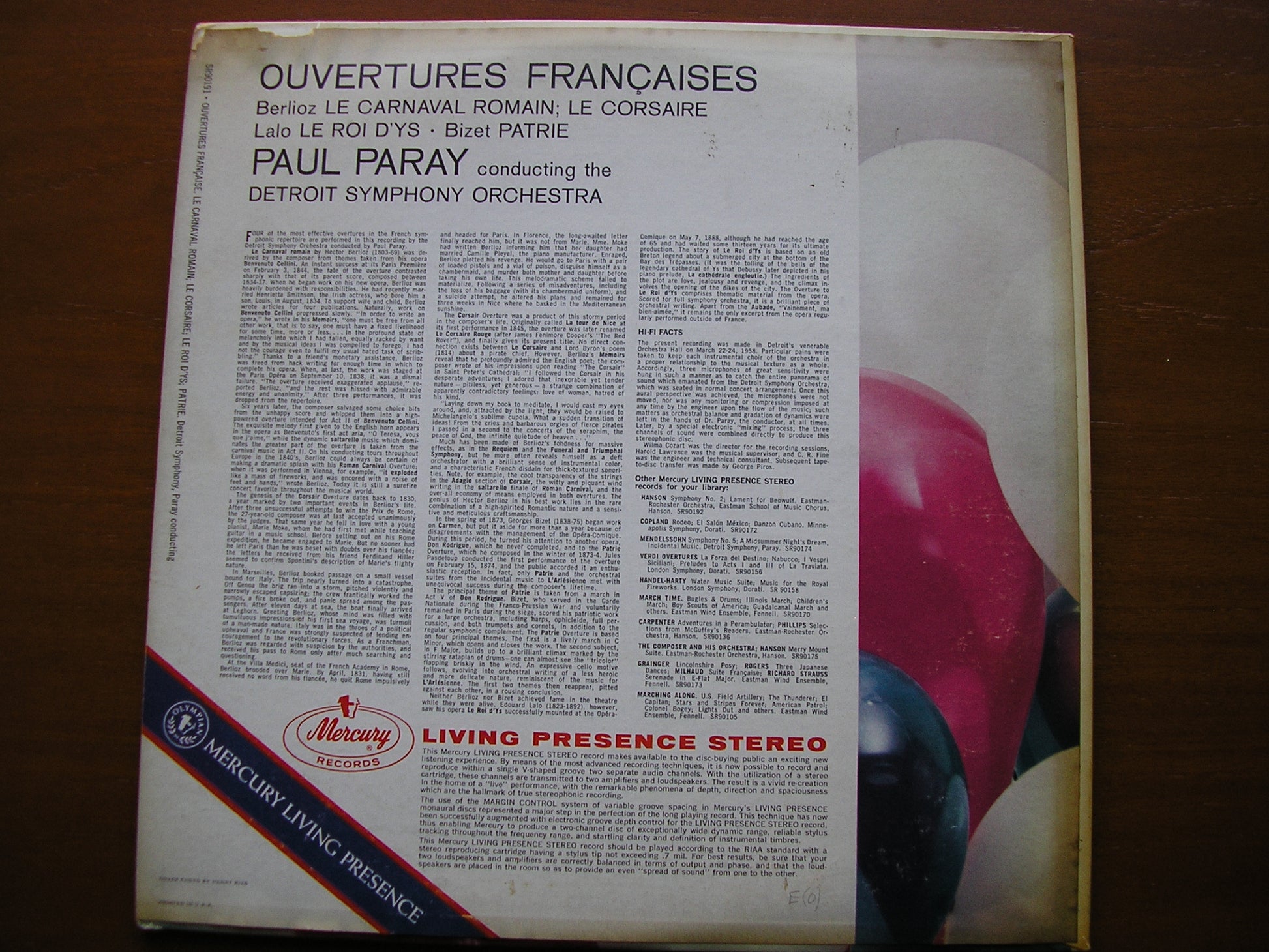 OUVERTURES FRANCAISES: LALO / BERLIOZ / BIZET PAUL PARAY / DETROIT SYMPHONY SR 90191