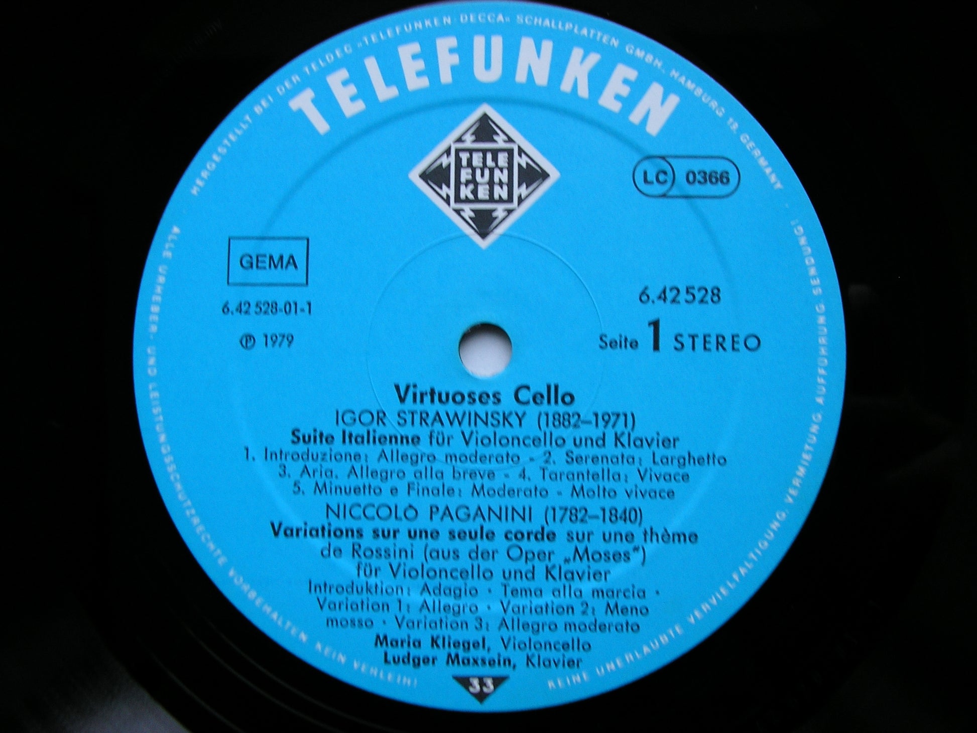 6.42528  VIRTUOSO MUSIC FOR CELLO: STRAVINSKY Suite Italienne / PAGANINI: Variations on Rossini's 'Mose' / BARTOK: Rhapsodie / FALLA: Suite Populaire Espagnole    MARIA KLIEGEL, cello / LUDGER MAXSEIN, piano
