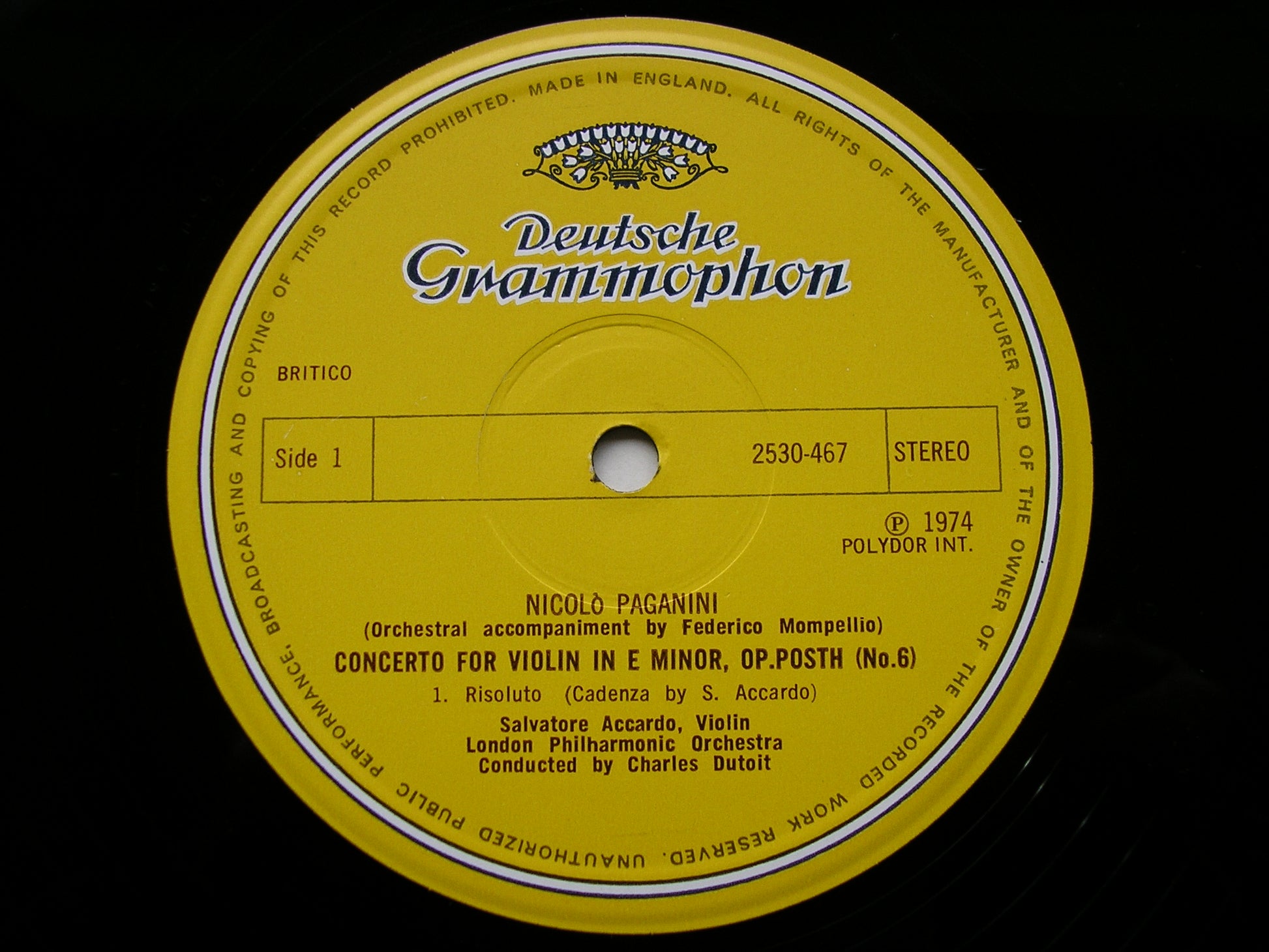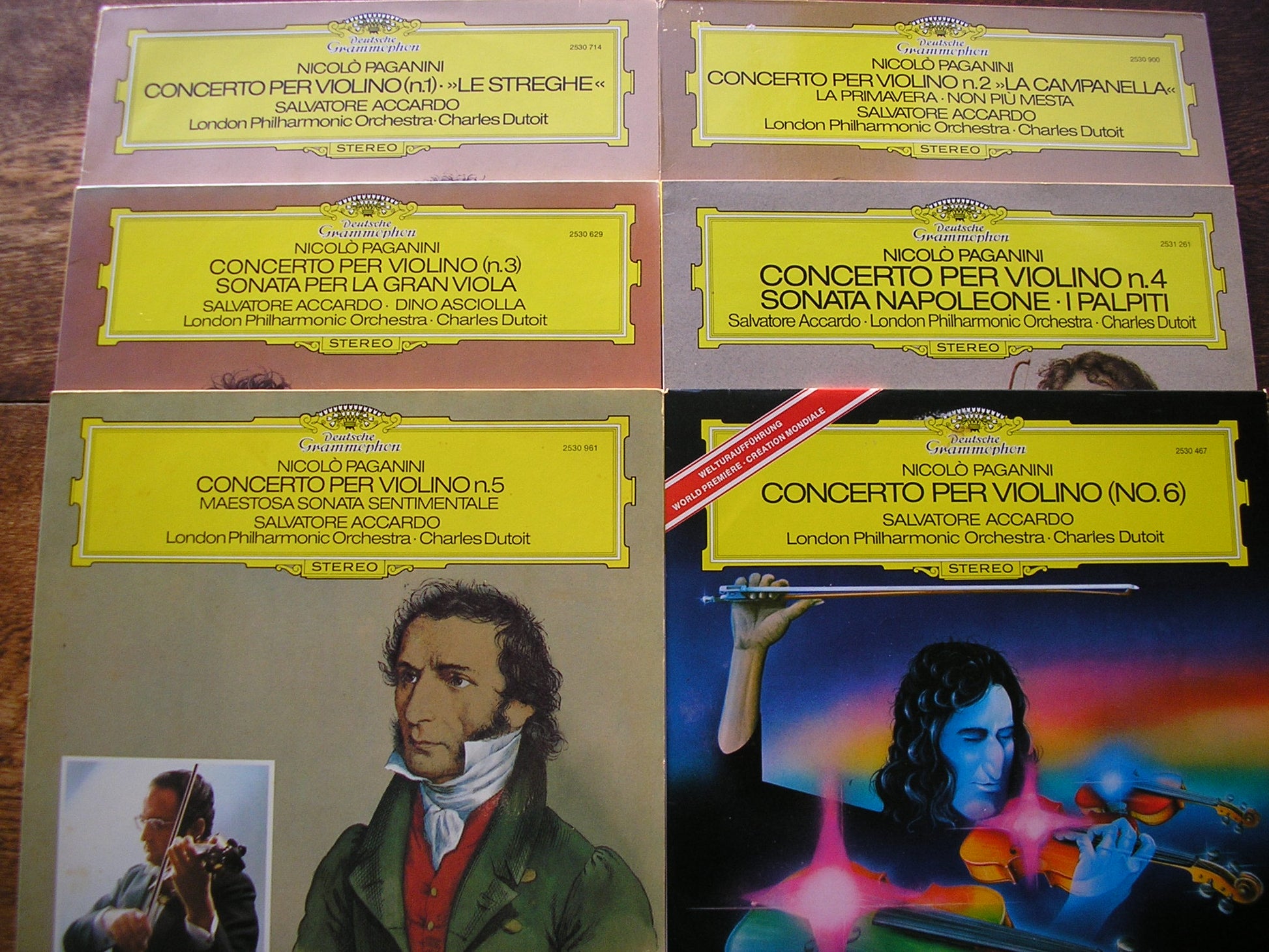 2530 714 / 2530 467 / 2530 900 / 2530 961 / 2531 261 / 2530 629  PAGANINI: VIOLIN CONCERTOS / SONATA FOR 'GRAN VIOLA' / SONATA NAPOLEONE / I PALPITI / INTRO & VARIATIONS / LA PRIMAVERA / MAESTOSA SONATA SENTIMENTALE    SALVATORE ACCARDO / LONDON PHILHARMONIC ORCHESTRA / CHARLES DUTOIT