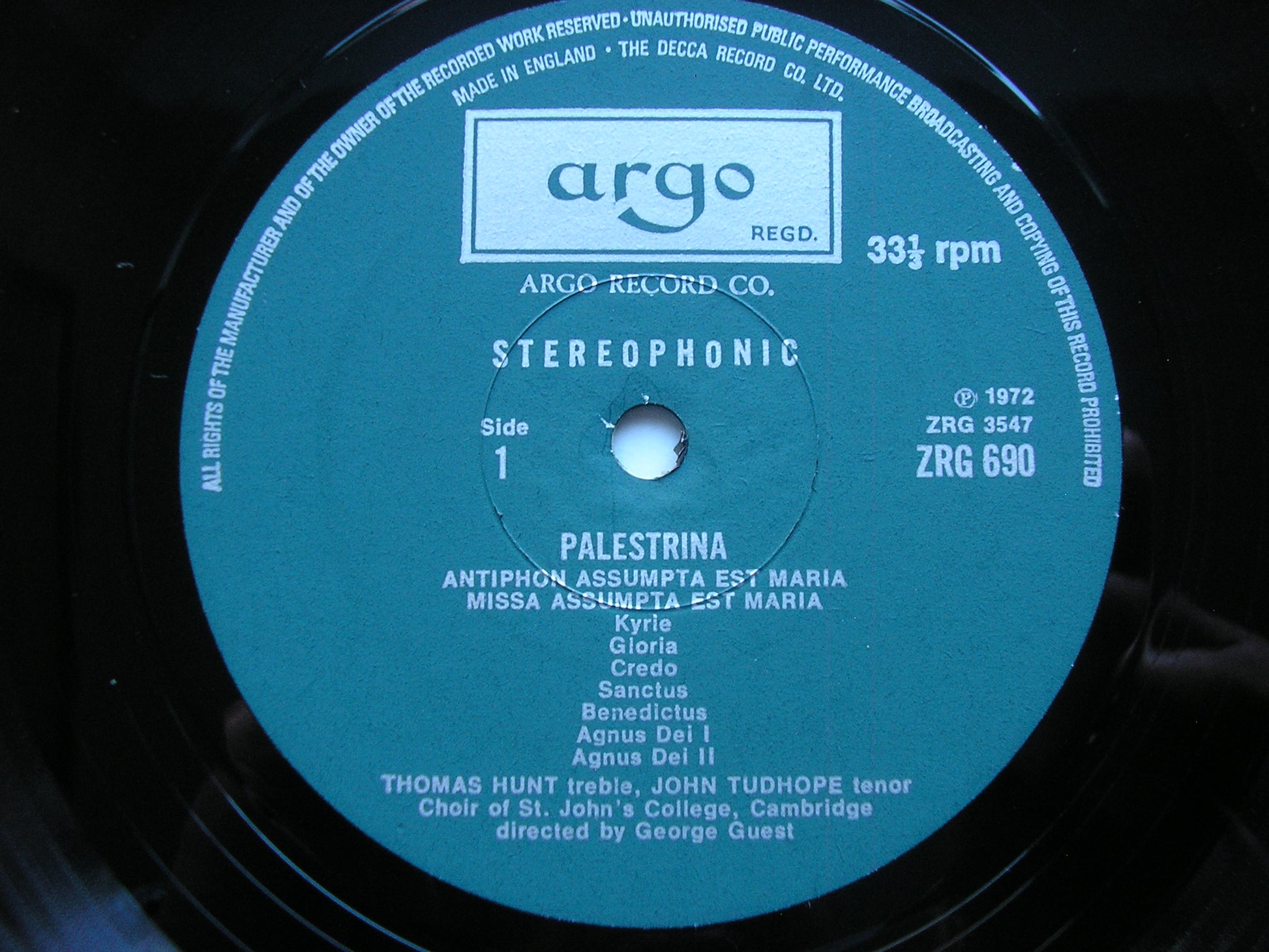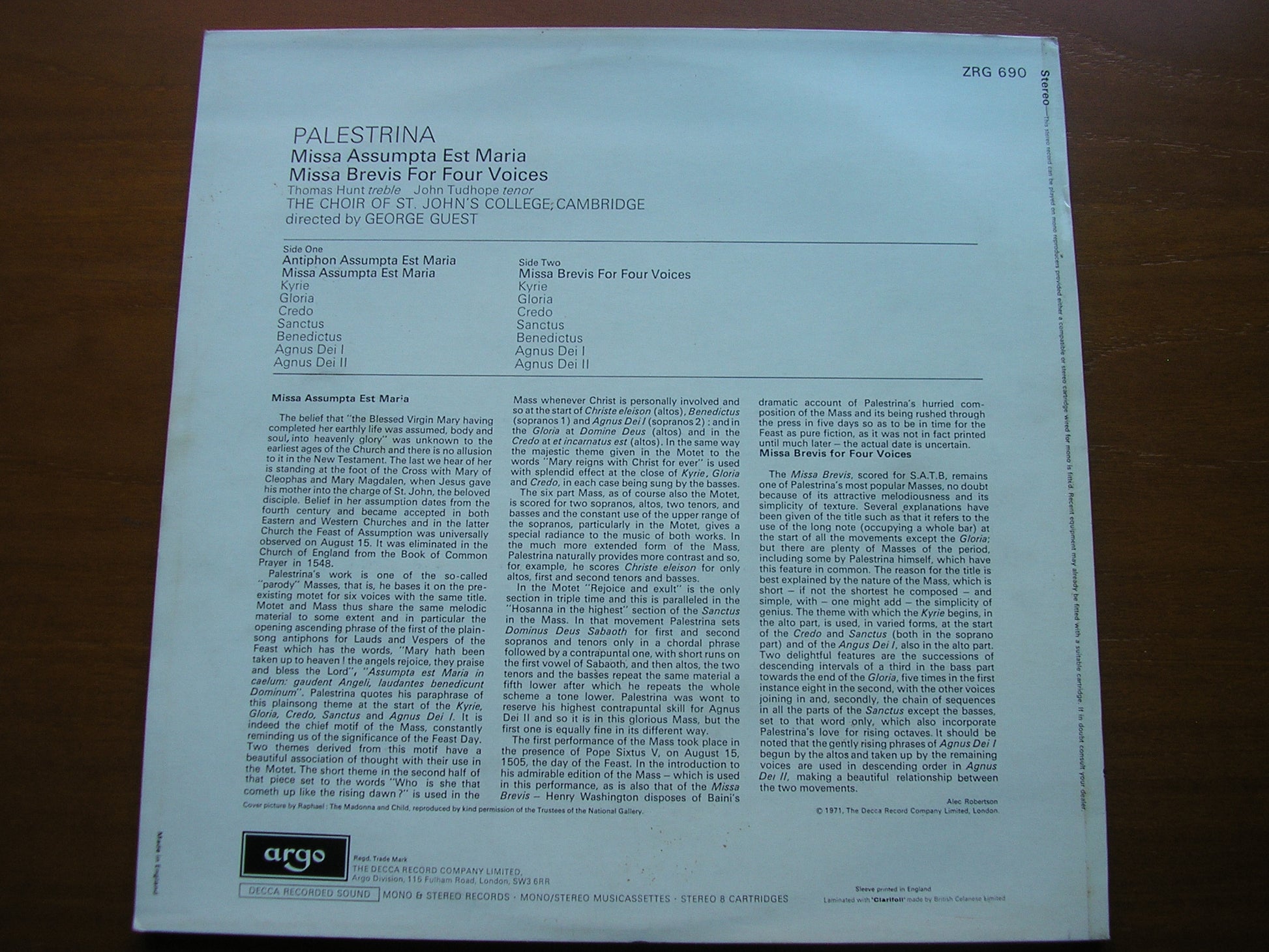 ZRG 690  PALESTRINA: MISSA ASSUMPTA EST MARIA / MISSA BREVIS     GEORGE GUEST / CHOIR OF ST JOHN'S COLLEGE, CAMBRIDGE