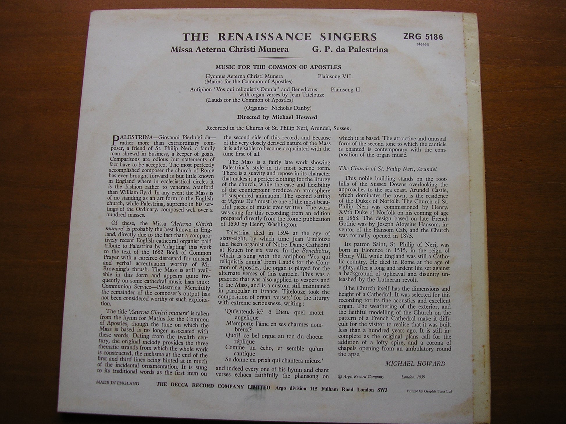 ZRGB 5186  PALESTRINA: MISSA AETERNA CHRISTI MUNERA    THE RENAISSANCE SINGERS / MICHAEL HOWARD