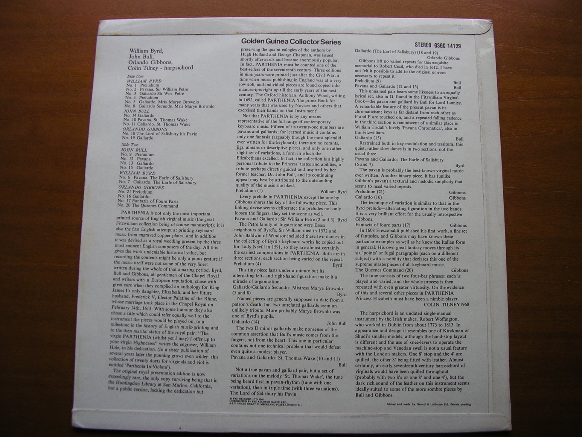 PARTHENIA: Harpsichord works by BYRD / GIBBONS / BULL COLIN TILNEY GSGC 14129