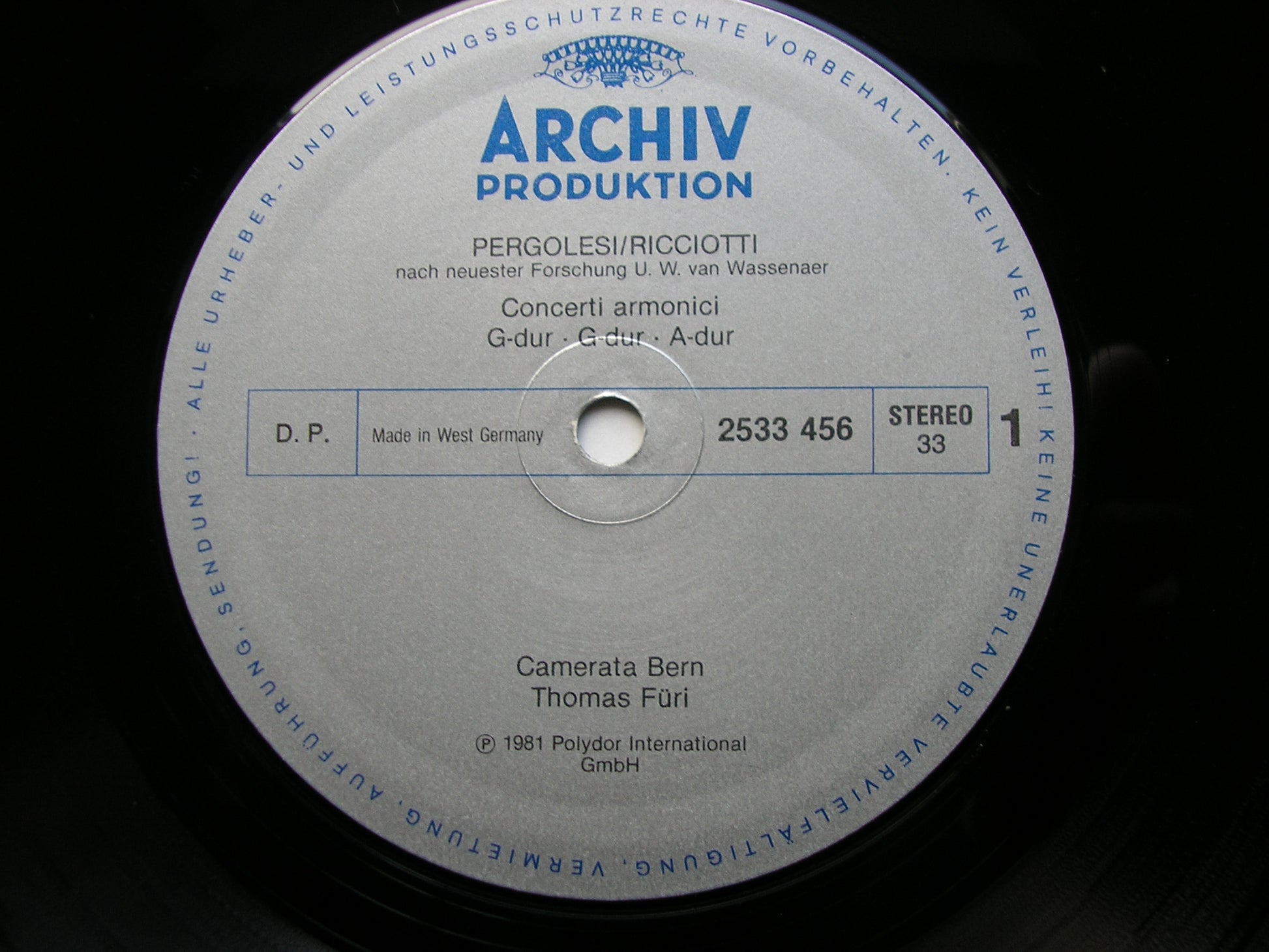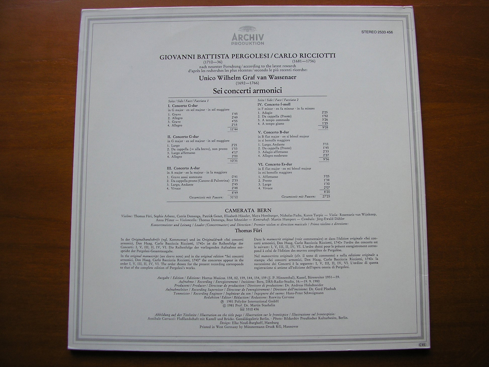 PERGOLESI-RICCIOTTI: SIX CONCERTI ARMONICI CAMERATA BERN / FURI 2533 456