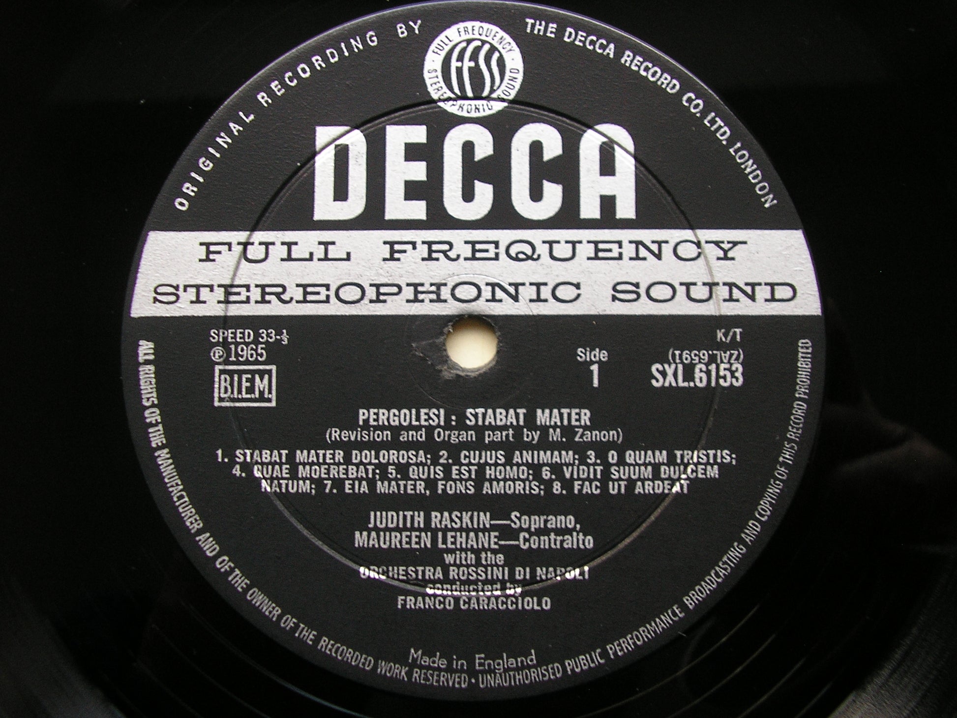 SXL 6135  PERGOLESI: STABAT MATER     JUDITH RASKIN / MAUREEN LEHANE / ROSSINI ORCHESTRA OF NAPLES / FRANCO CARACCIOLO