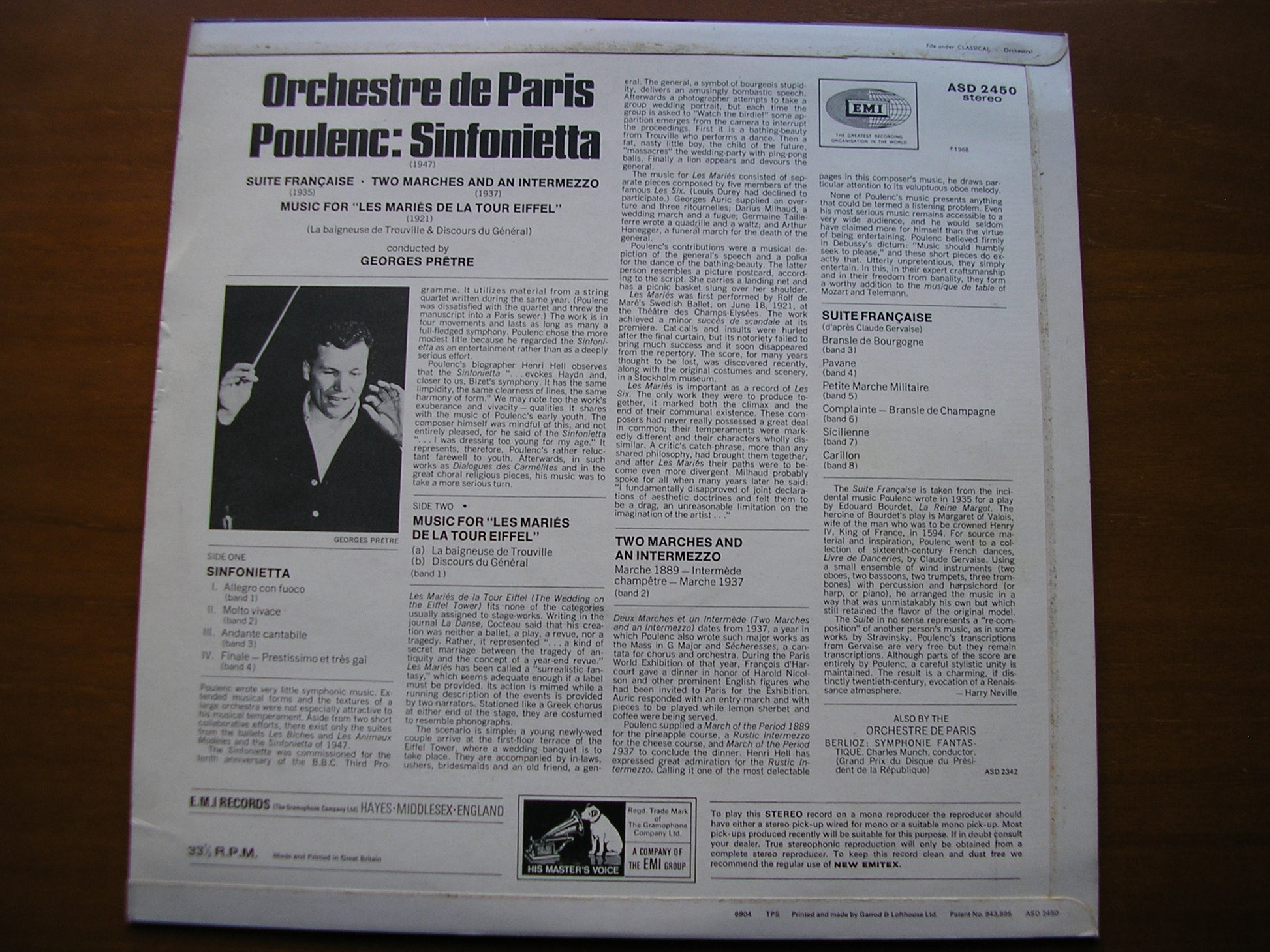 ASD 2450  POULENC: SINFONIETTA / SUITE FRANCAISE / TWO MARCHES       GEORGES PRETRE / ORCHESTRE DE PARIS