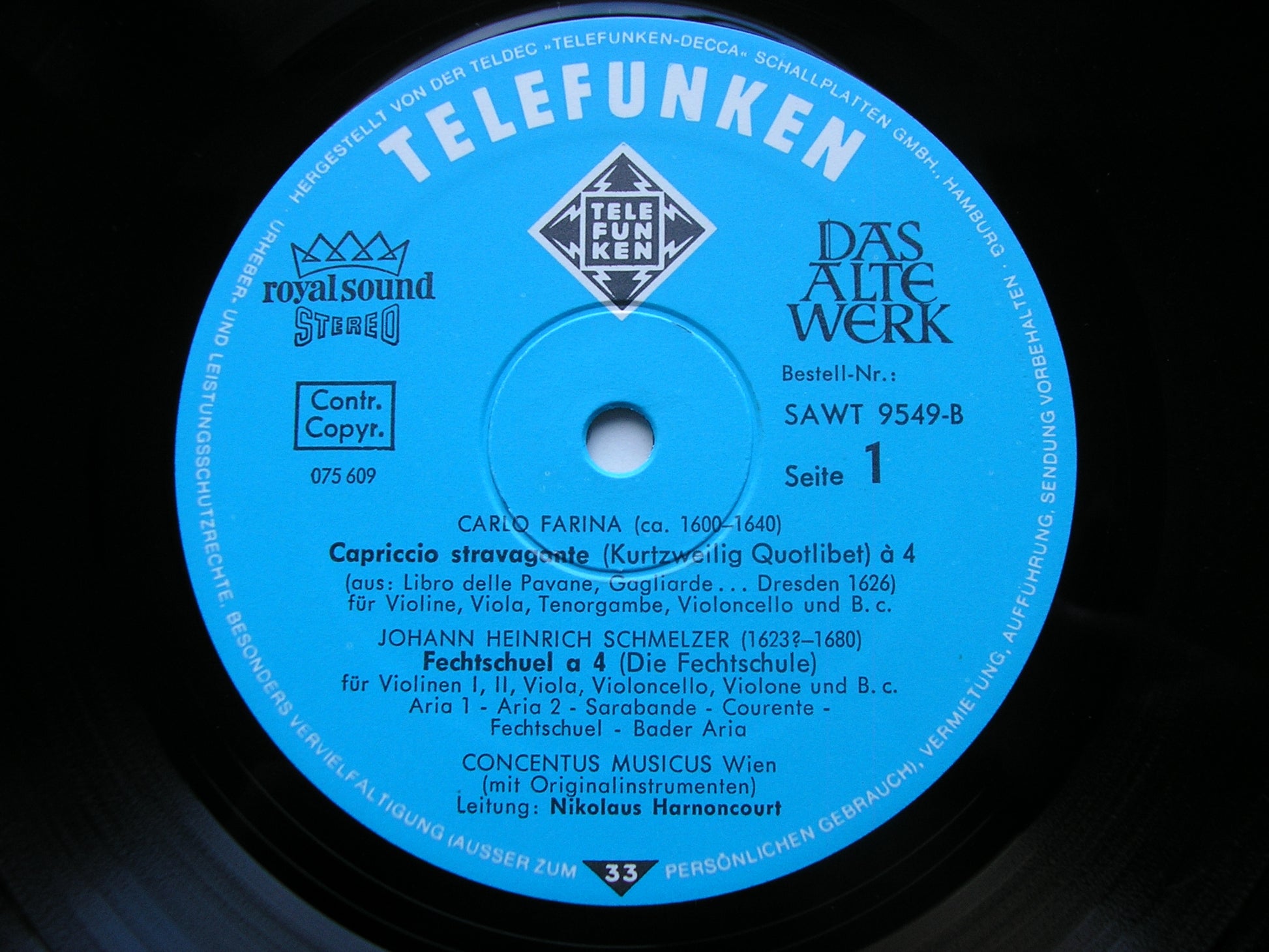 SAWT 9549  BIBER / SCHMELZER / VIVALDI / FARINA / MARAIS: SONATAS / CONCERTO / CAPRICCIO       NIKOLAUS HARNONCOURT / CONCENTUS MUSICUS VIENNA
