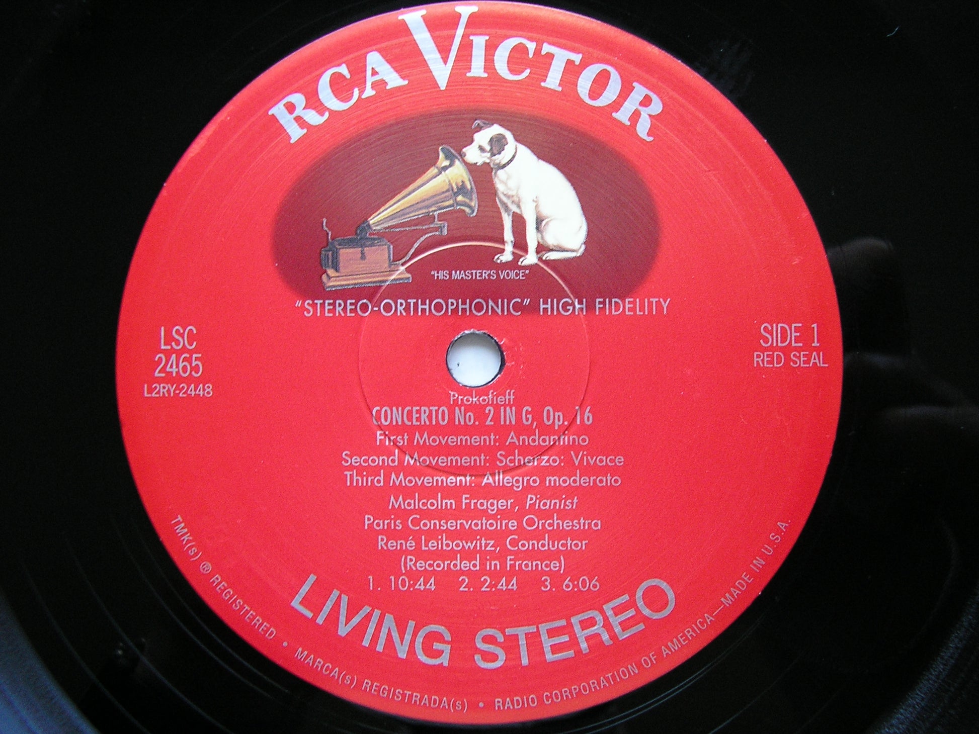 LSC 2465  PROKOFIEV: PIANO CONCERTO No. 2 / HAYDN: PIANO SONATA No. 35  MALCOLM FRAGER / PARIS CONSERVATOIRE ORCHESTRA / RENE LEIBOWITZ