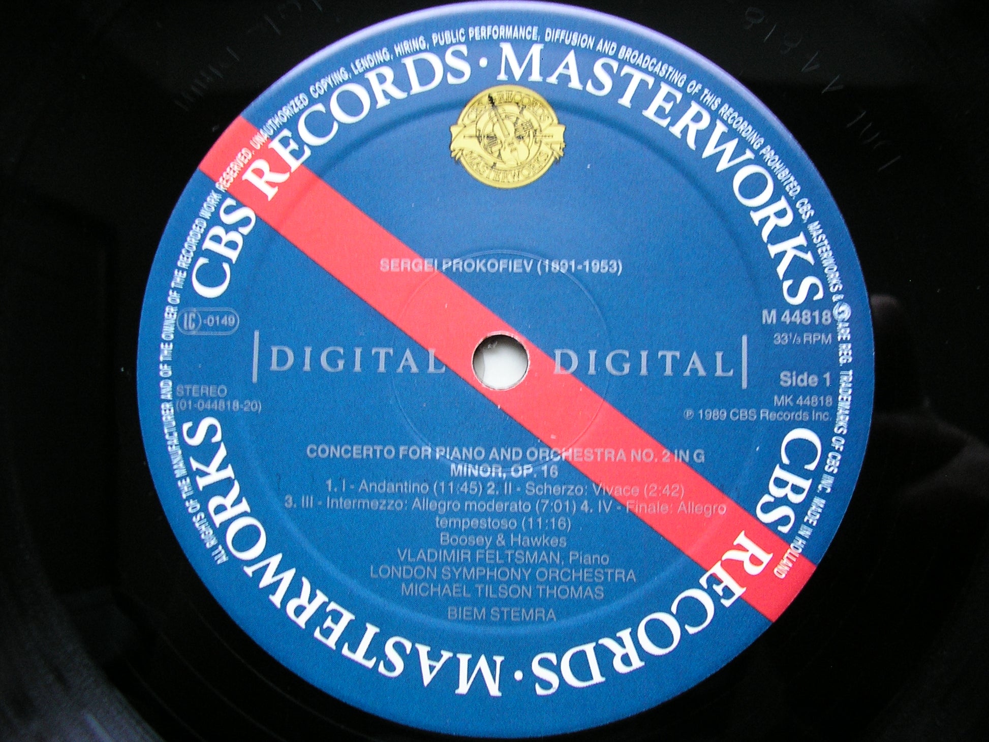 M44818  PROKOFIEV: PIANO CONCERTOS Nos. 1 & 2    VLADIMIR FELTSMAN / LONDON SYMPHONY ORCHESTRA / MICHAEL TILSON THOMAS