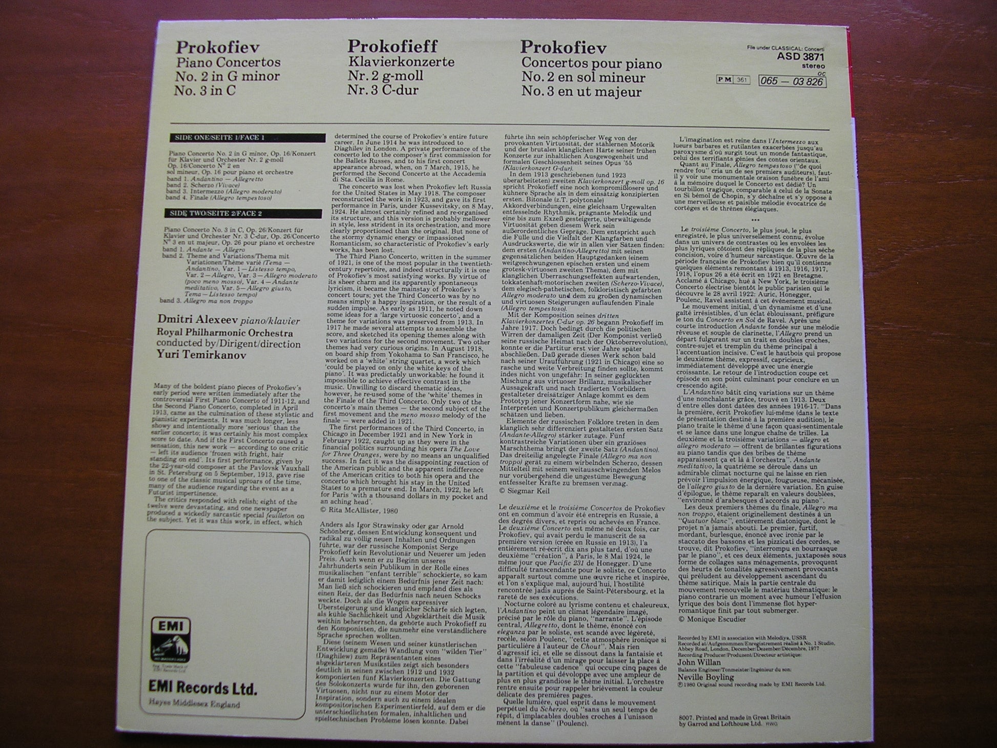 ASD 3871  PROKOFIEV: PIANO CONCERTOS Nos. 2 & 3    DMITRI ALEXEEV / ROYAL PHILHARMONIC ORCHESTRA / YURI TEMIRKANOV