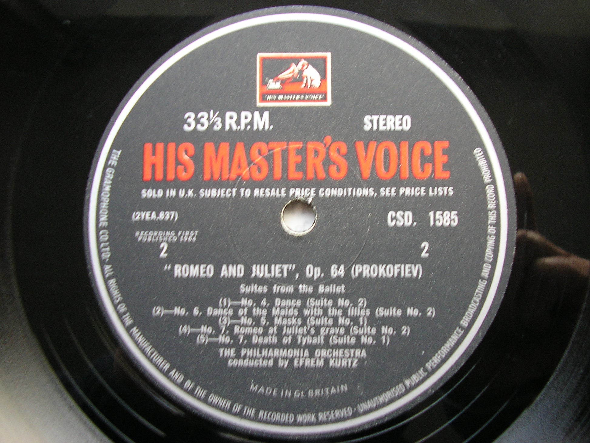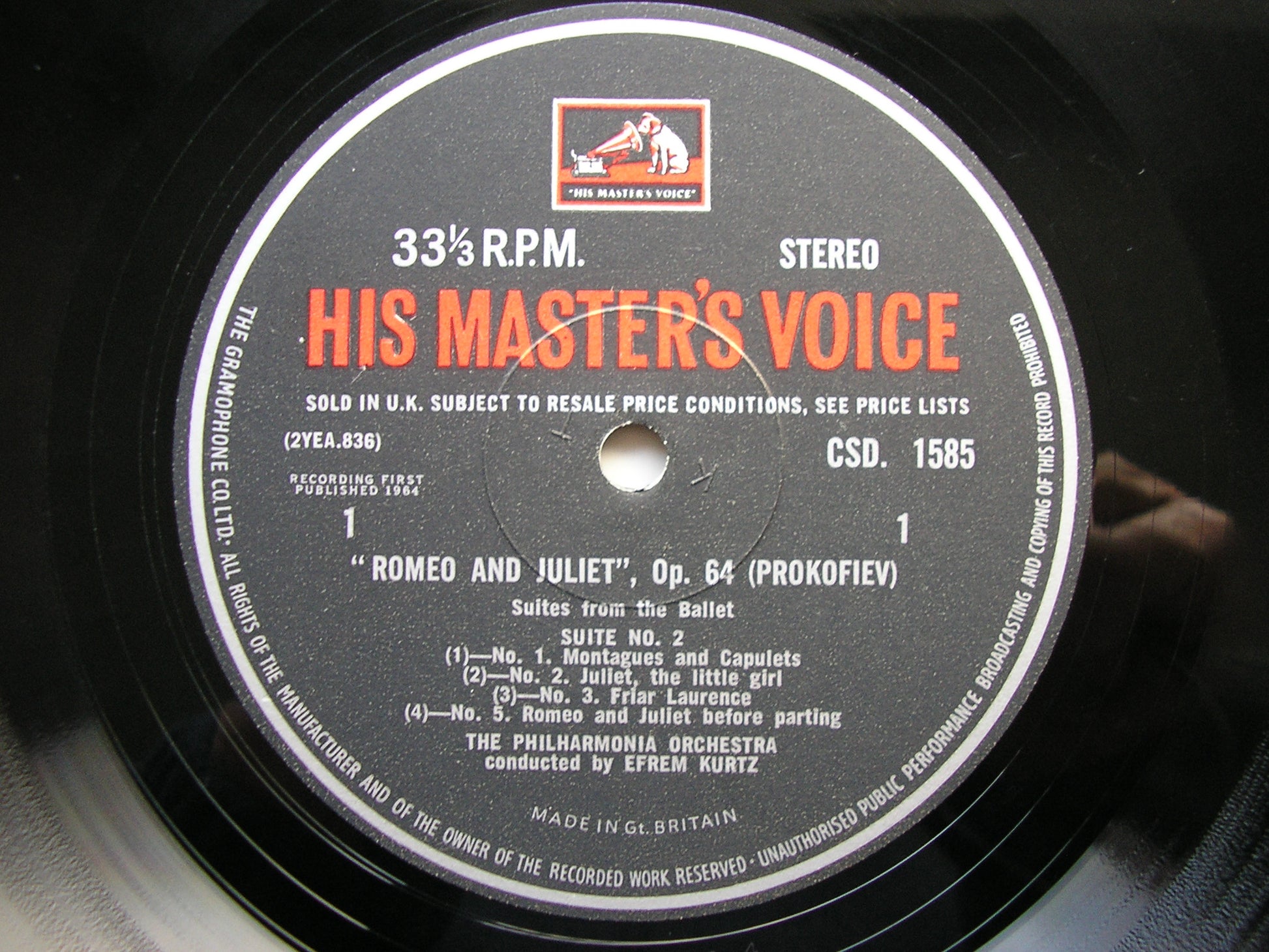 PROKOFIEV: ROMEO & JULIET Ballet Suites EFREM KURTZ / PHILHARMONIA ORCHESTRA CSD 1585