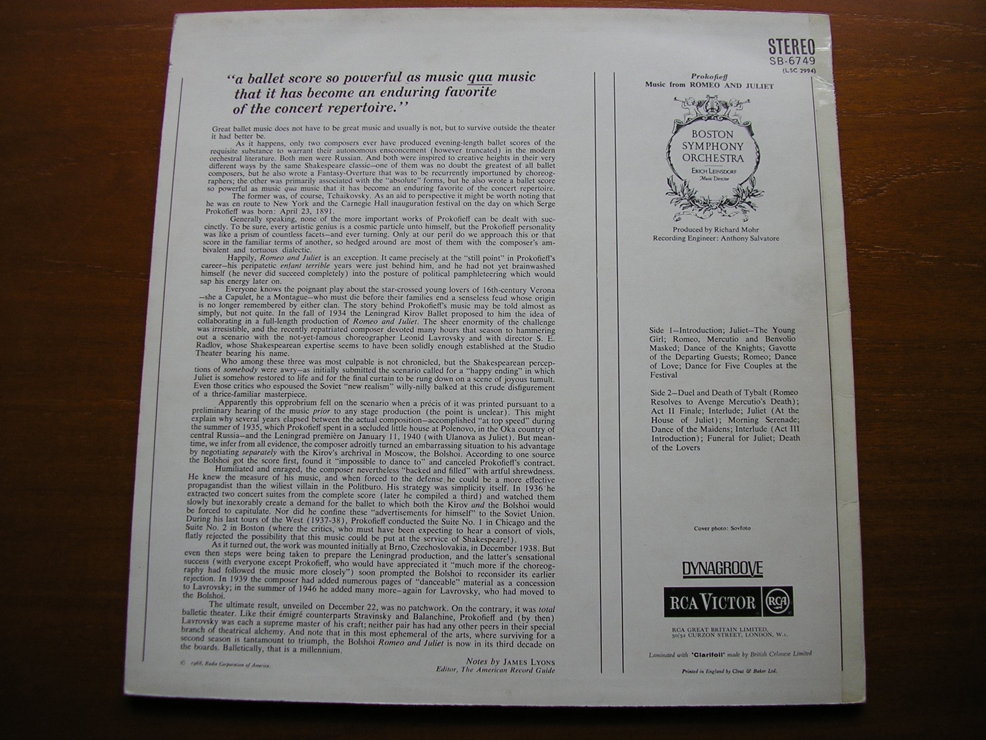 PROKOFIEV: ROMEO & JULIET Excerpts LEINSDORF / BOSTON SYMPHONY SB 6749