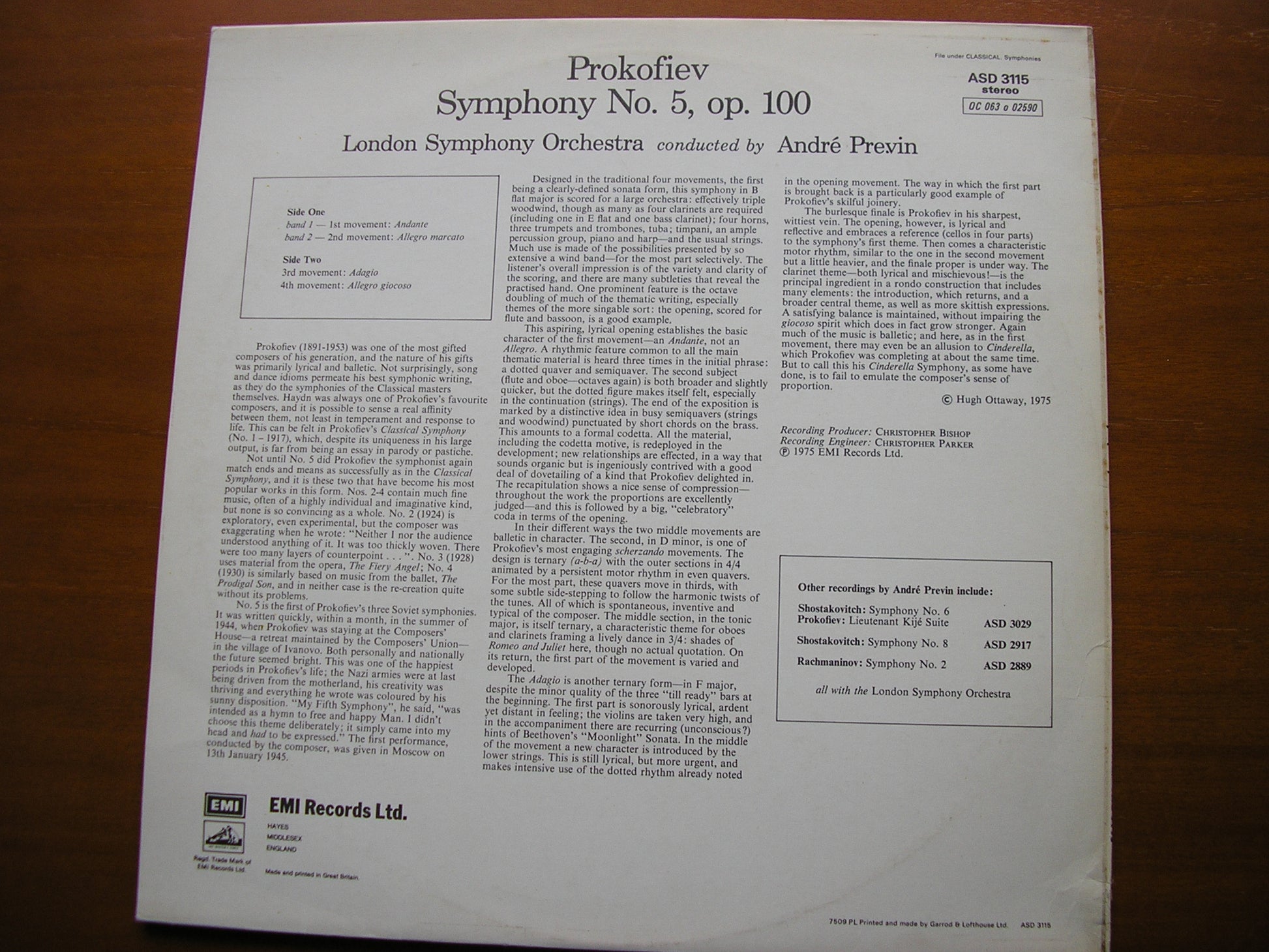 ASD 3115 PROKOFIEV: SYMPHONY No. 5      ANDRE PREVIN / LONDON SYMPHONY ORCHESTRA