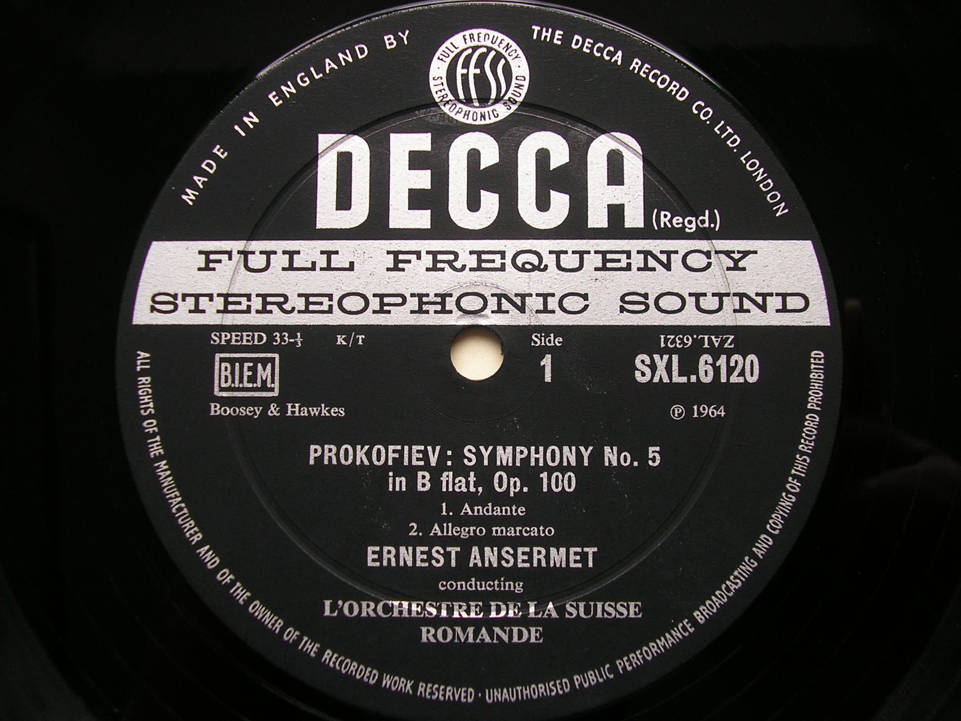 SXL 6120  PROKOFIEV: SYMPHONY No. 5     ERNEST ANSERMET / SUISSE ROMANDE ORCHESTRA