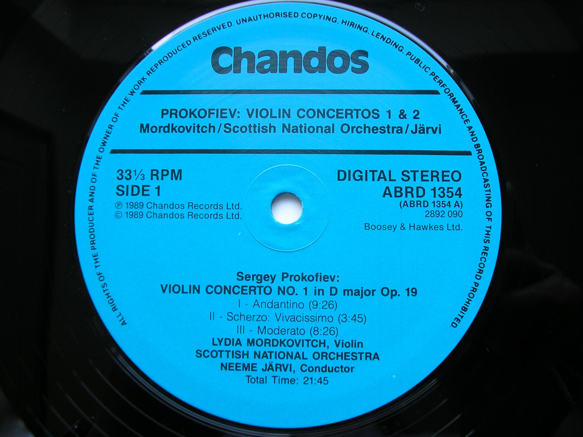 PROKOFIEV: THE TWO VIOLIN CONCERTOS MORDKOVITCH / SCOTTISH NATIONAL ORCHESTRA / JARVI ABRD 1354