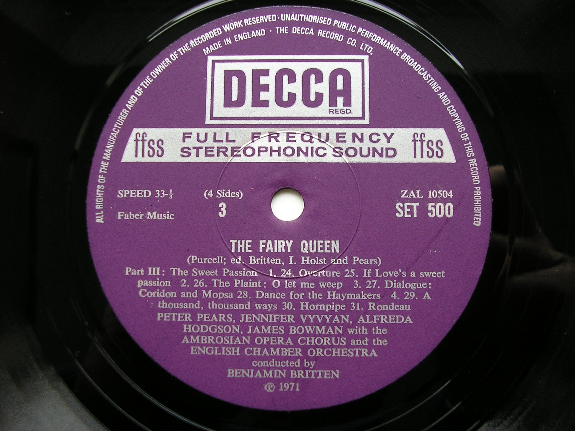 PURCELL: THE FAIRY QUEEN (1692) SOLOISTS / AMBROSIAN OPERA CHORUS / ENGLISH CHAMBER ORCHESTRA / BRITTEN 2LP SET 499/500