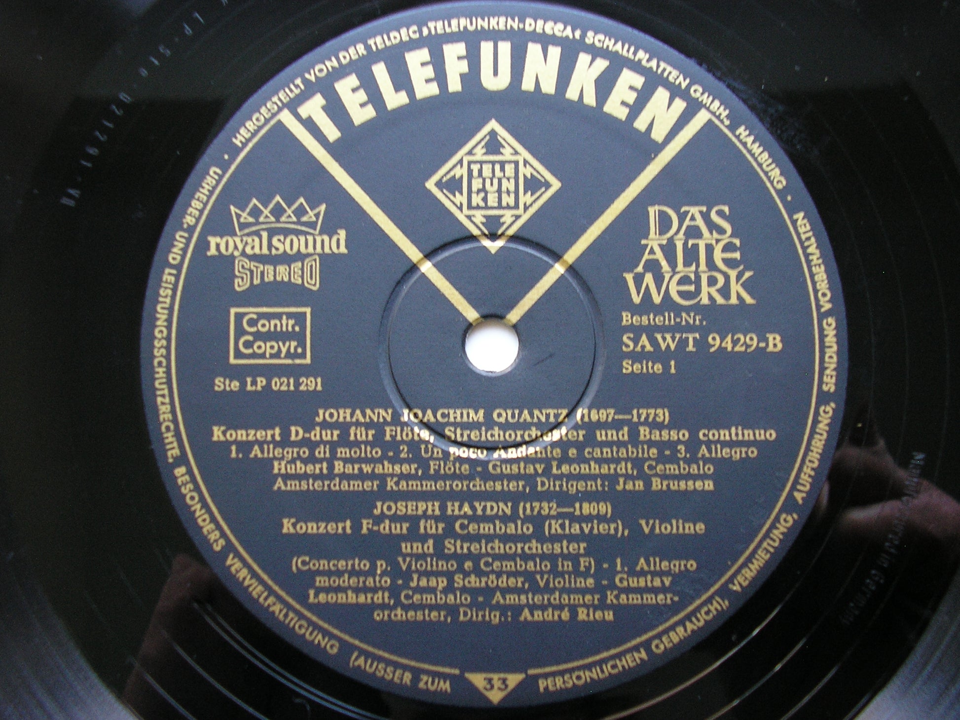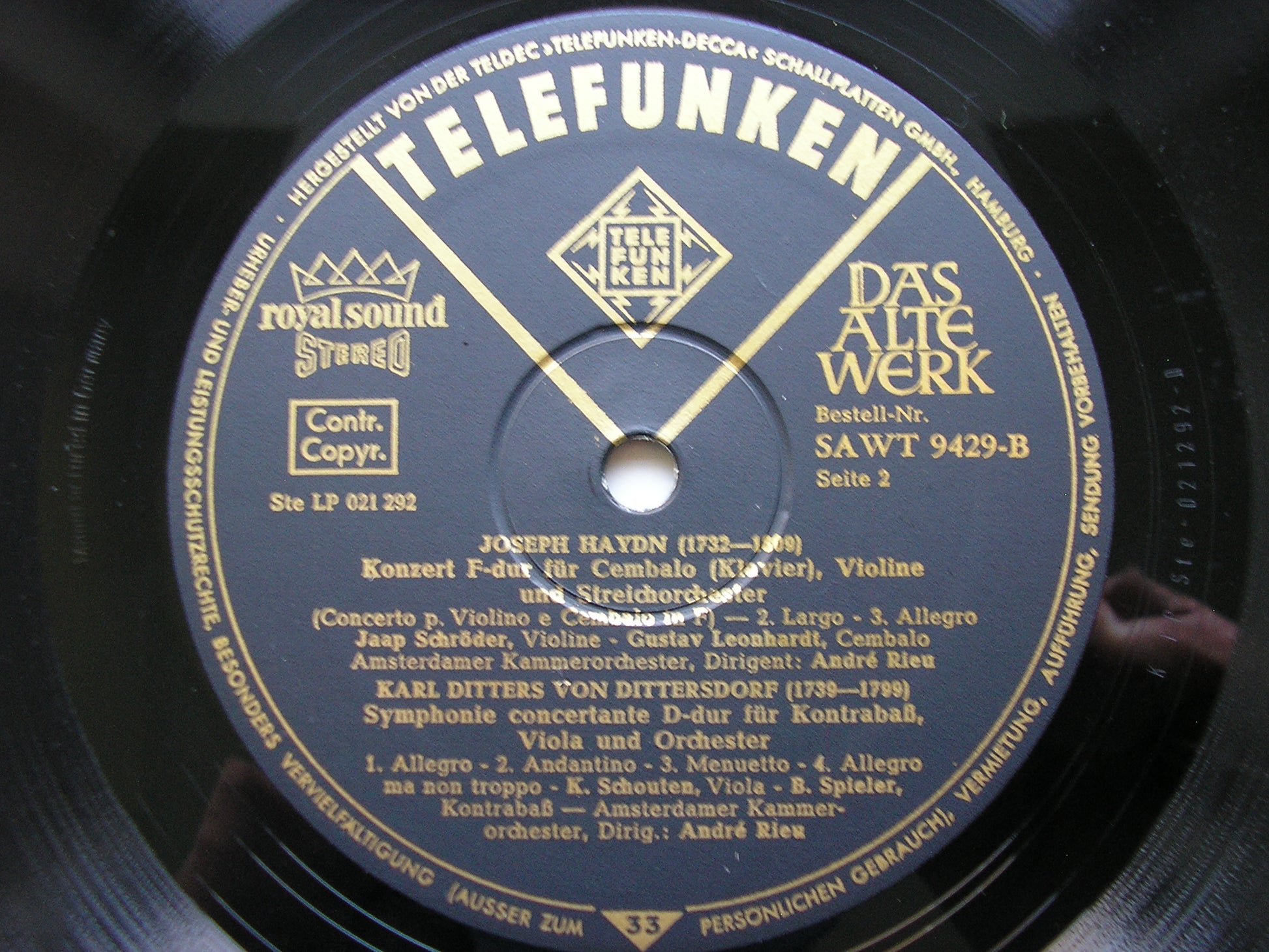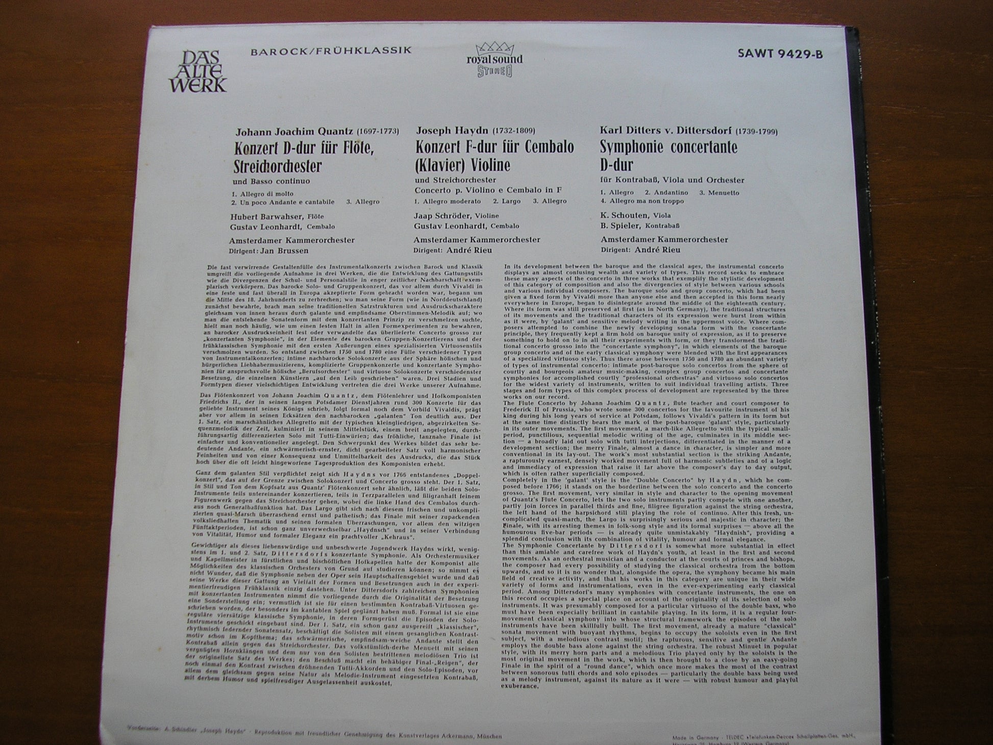 SAWT 9429  QUANTZ: CONCERTO in D / HAYDN: CONCERTO in F / DITTERSDORF: SYMPHONIE CONCERTANTE     SOLOISTS / AMSTERDAM CHAMBER ORCHESTRA / ANDRE RIEU