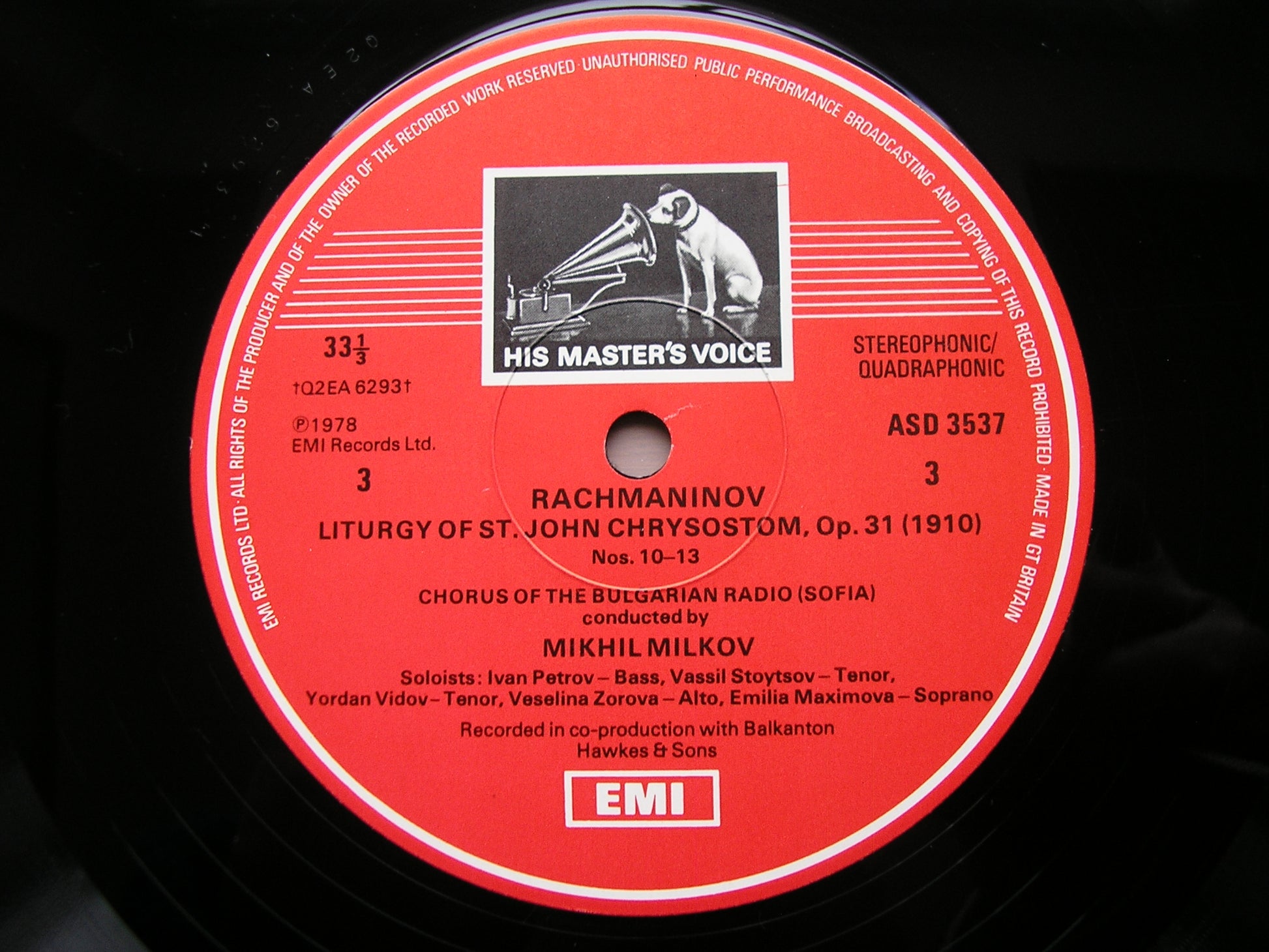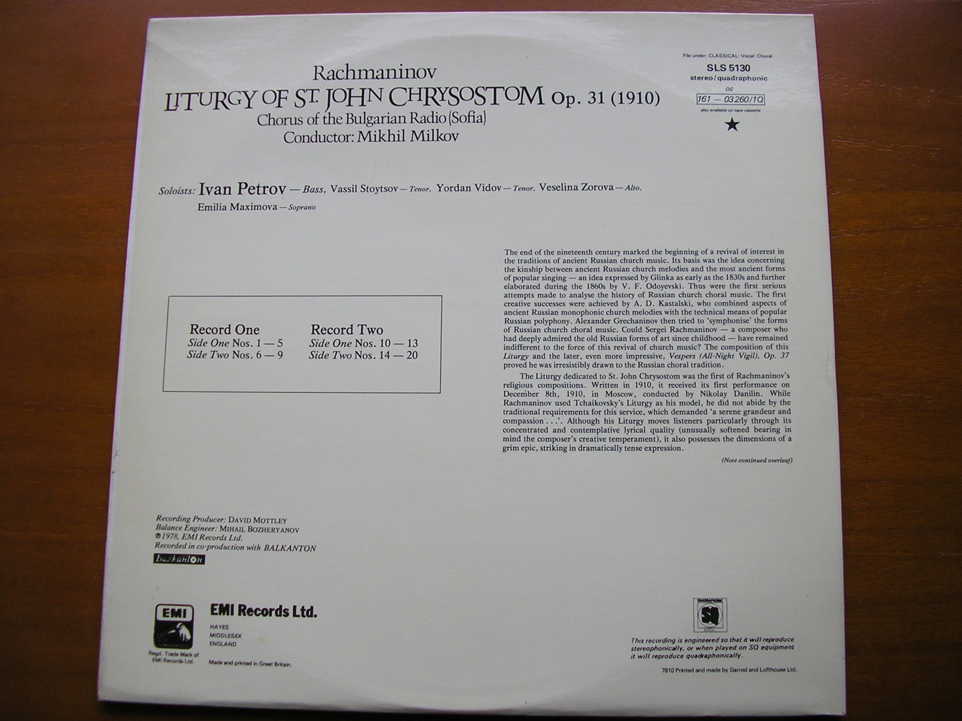 SLS 5130  RACHMANINOV: LITURGY OF ST JOHN CHRYSOSTOM        SOLOISTS / CHORUS OF BULGARIAN RADIO / MIKHIL MILKOV