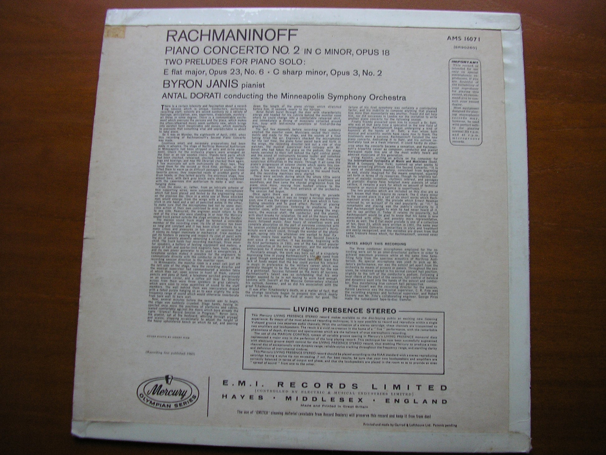 AMS 16071  RACHMANINOV: PIANO CONCERTO No. 2 / PRELUDE in E / PRELUDE in C    BYRON JANIS / MINNEAPOLIS SYMPHONY ORCHESTRA / ANTAL DORATI