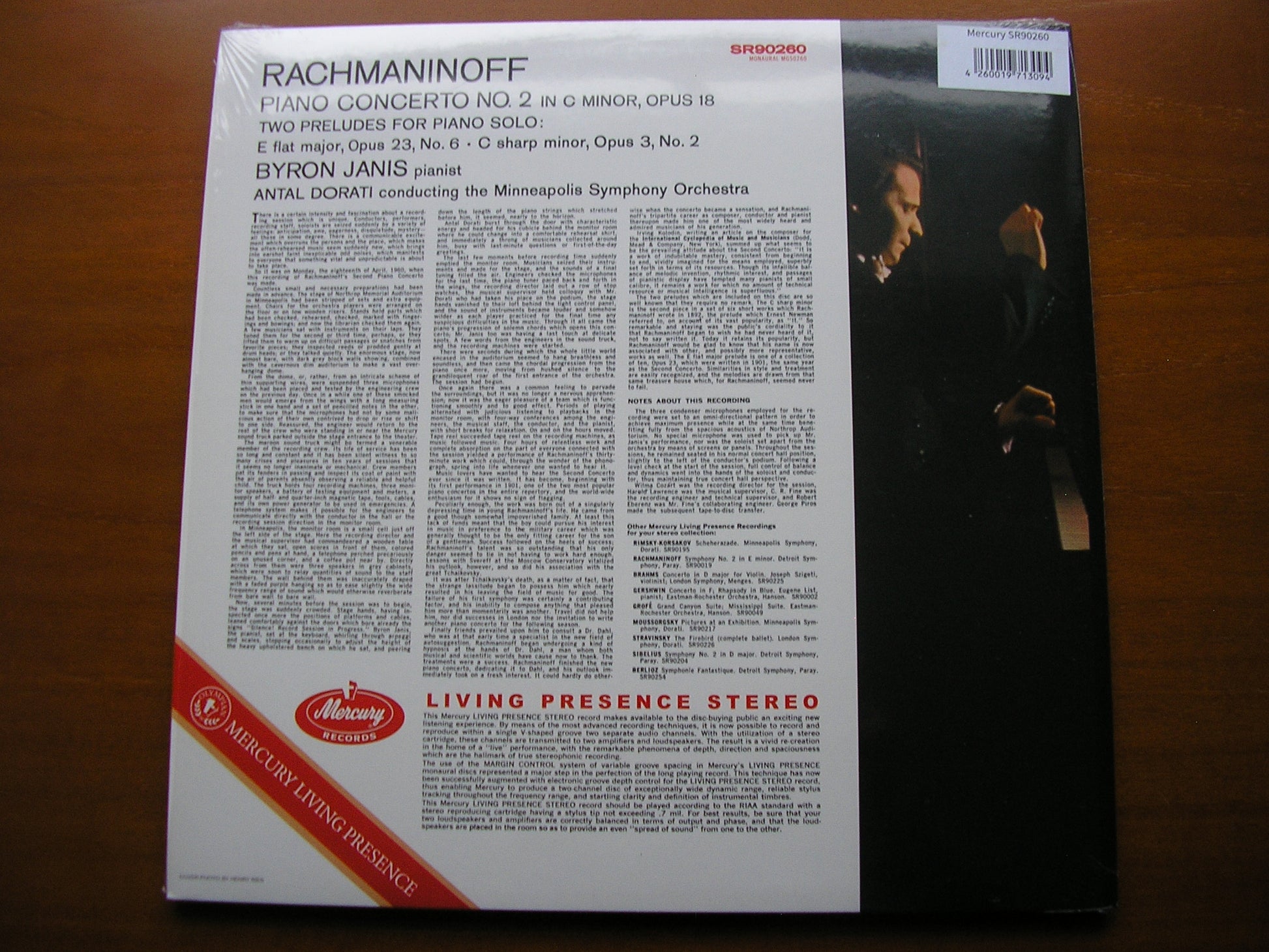 SR90260  RACHMANINOV: PIANO CONCERTO No. 2 / PRELUDES in E & C      BYRON JANIS / MINNEAPOLIS SYMPHONY ORCHESTRA / ANTAL DORATI