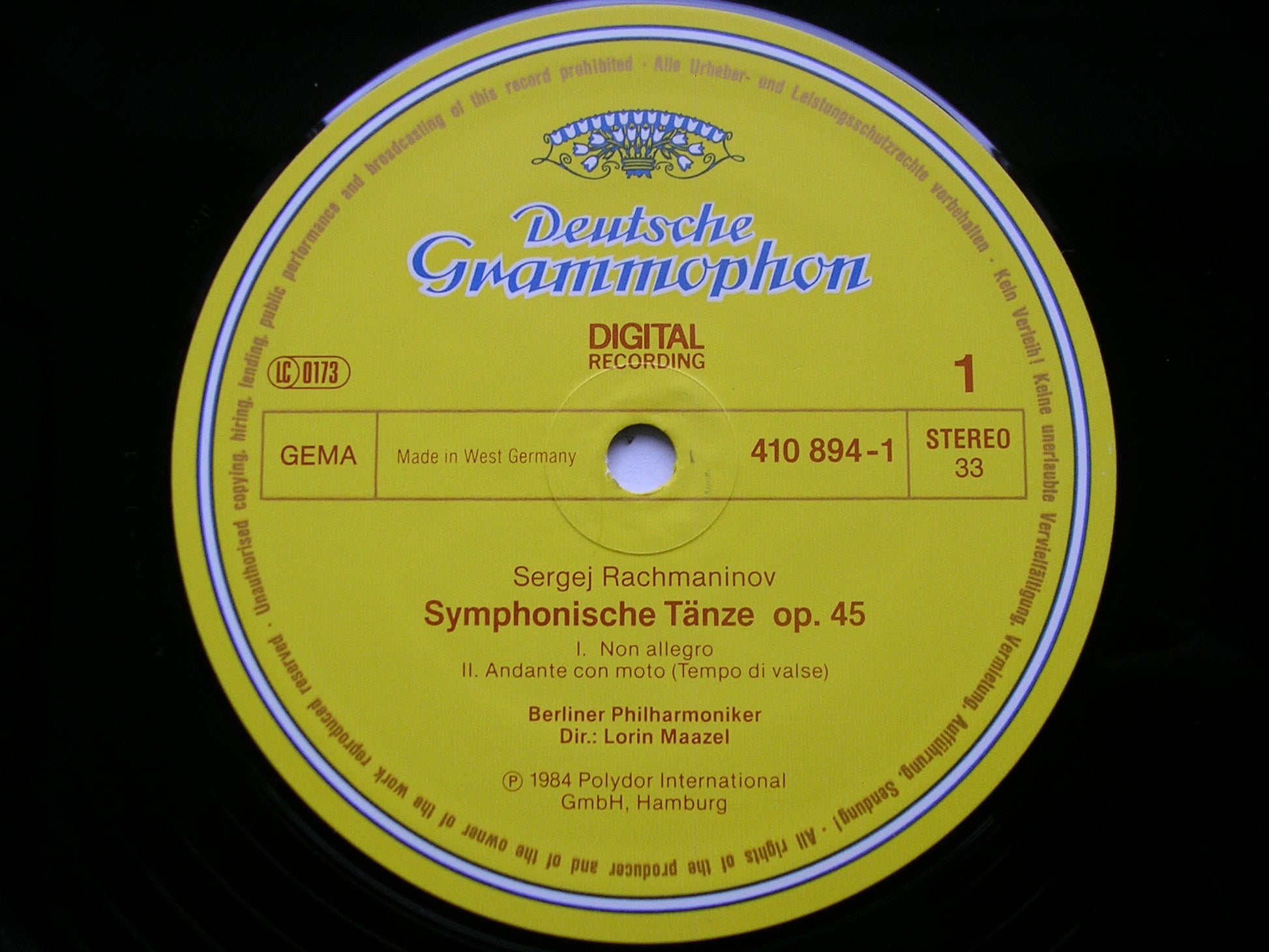 410 894  RACHMANINOV: SYMPHONIC DANCES / INTERMEZZO / VOCALISE      LORIN MAAZEL / BERLIN PHILHARMONIC