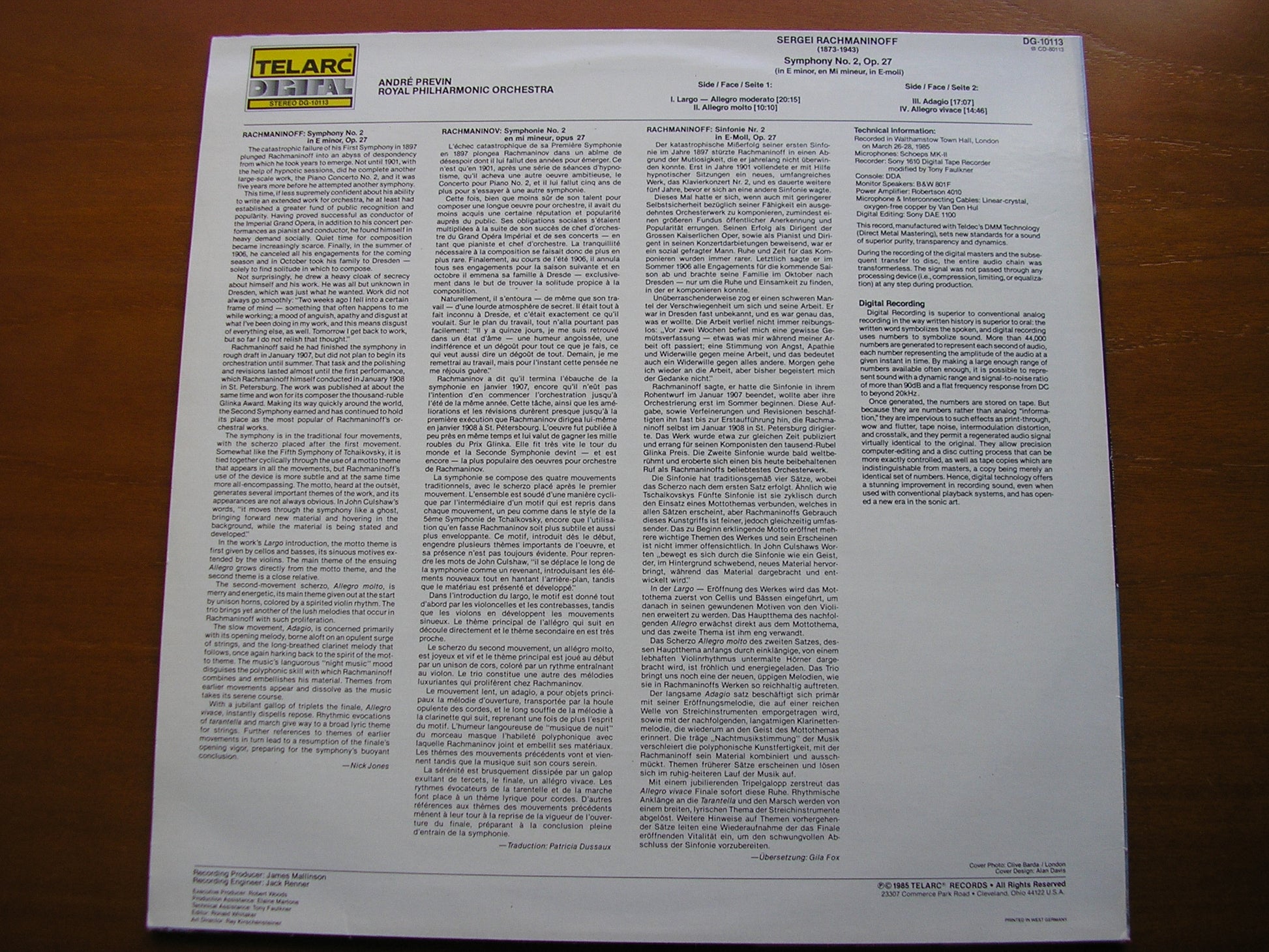 DG-10113  RACHMANINOV: SYMPHONY No. 2     ANDRE PREVIN / ROYAL PHILHARMONIC ORCHESTRA