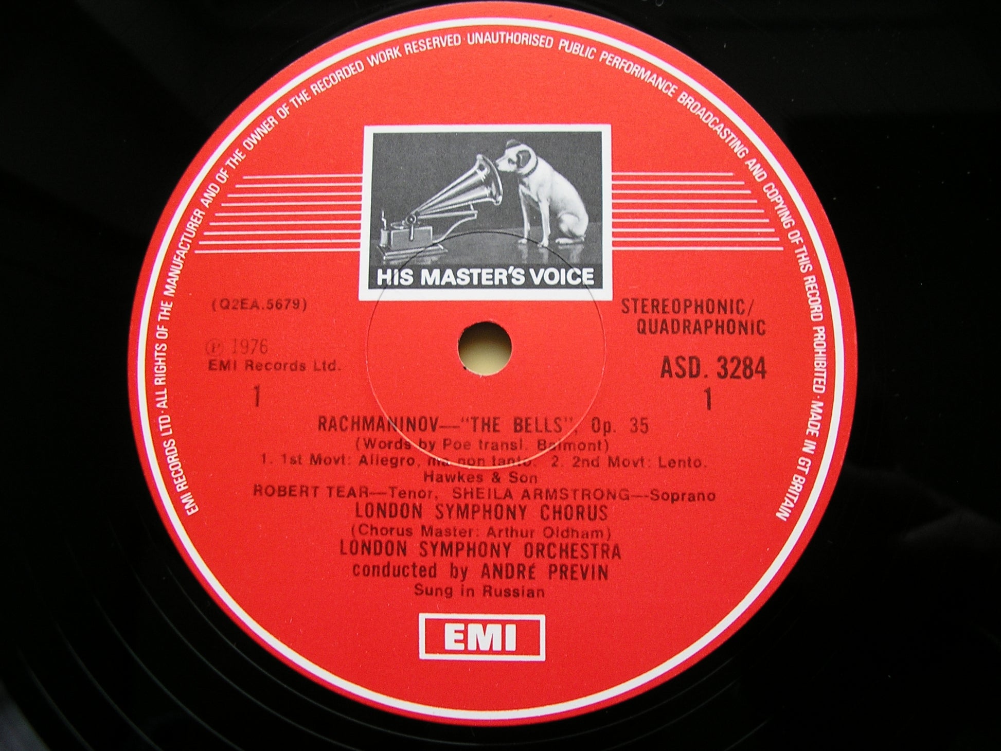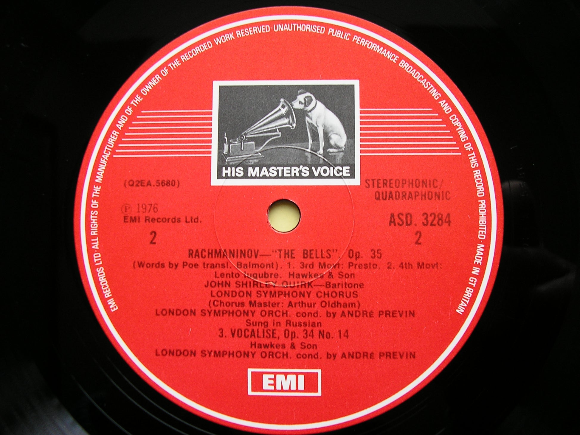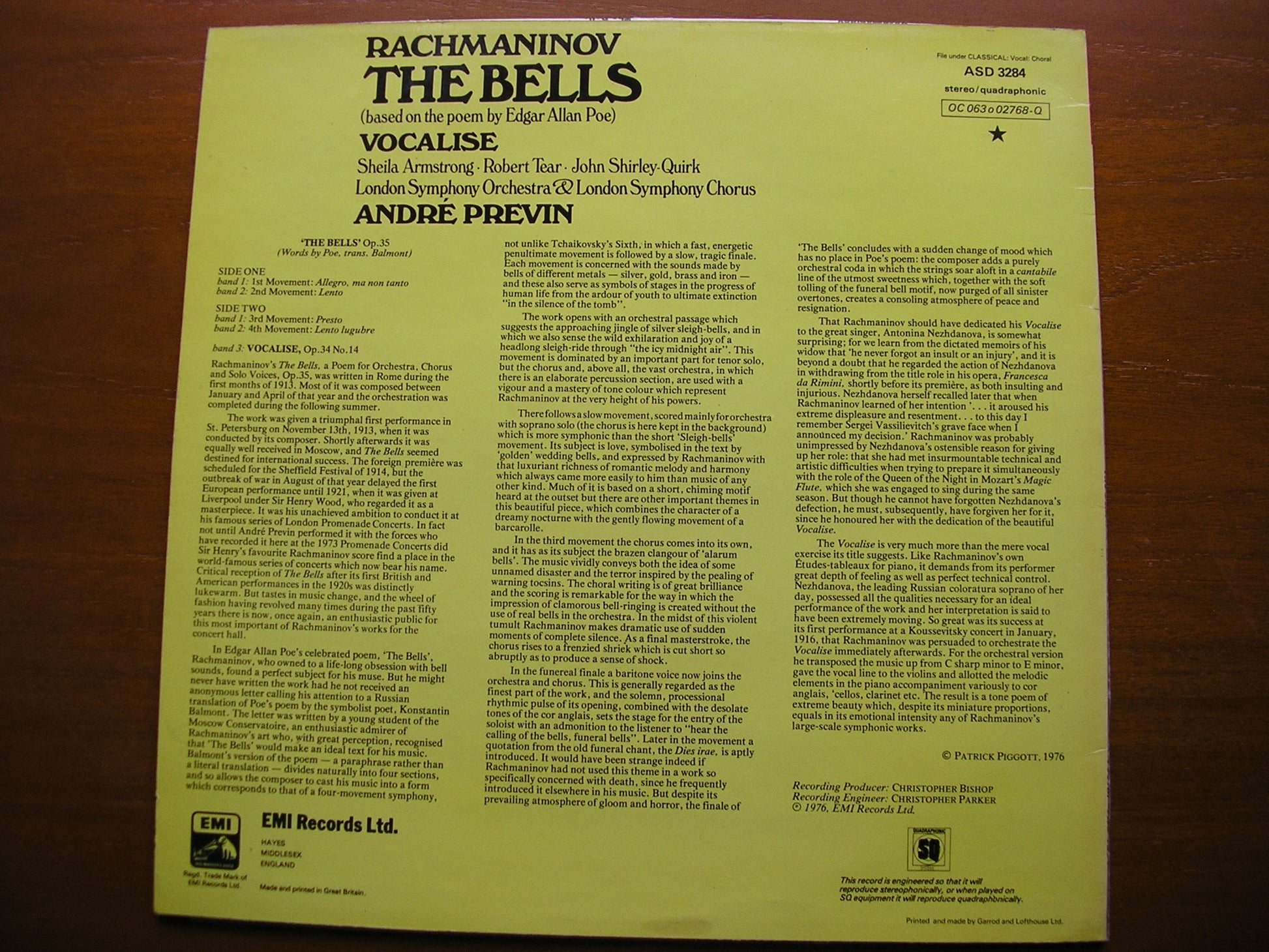 ASD 3284 RACHMANINOV: THE BELLS / VOCALISE   SOLOISTS / LONDON SYMPHONY ORCHESTRA / ANDRE PREVIN