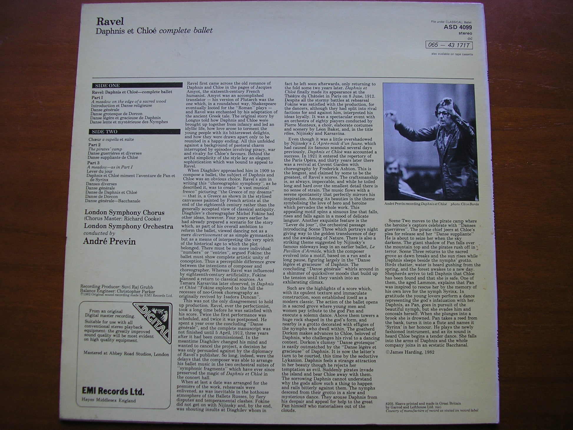 ASD 4099  RAVEL: DAPHNIS & CHLOE        ANDRE PREVIN / LONDON SYMPHONY ORCHESTRA