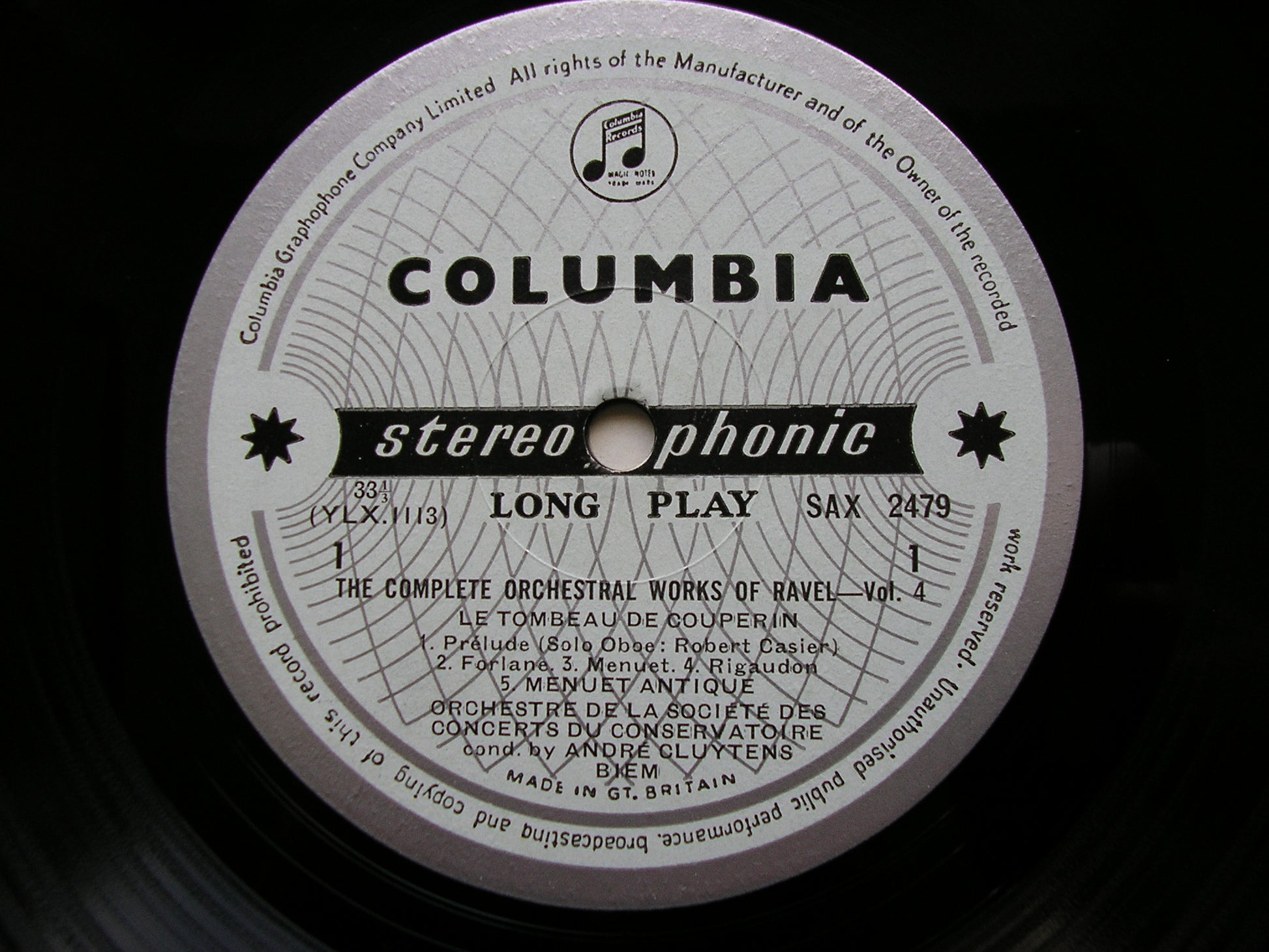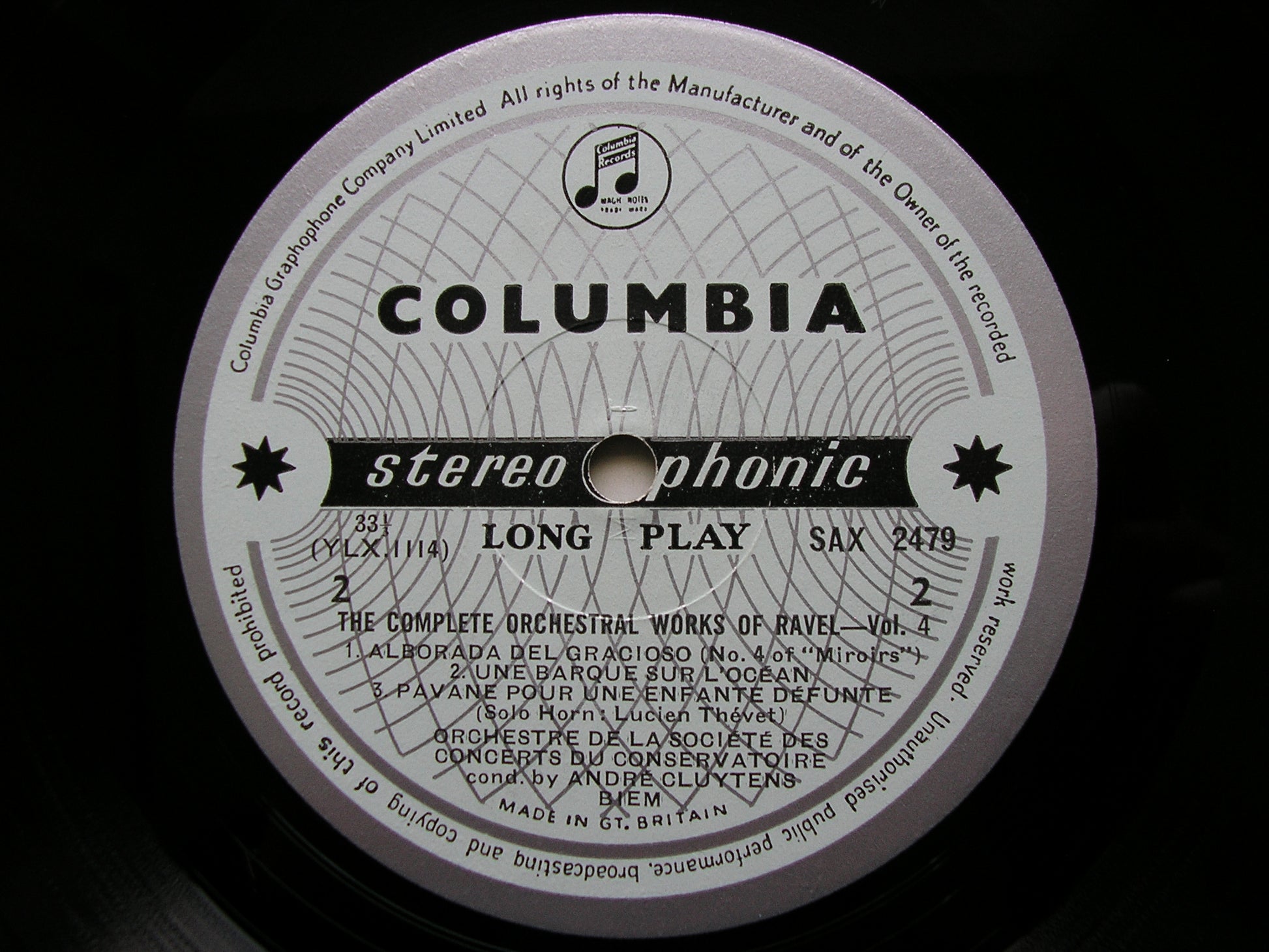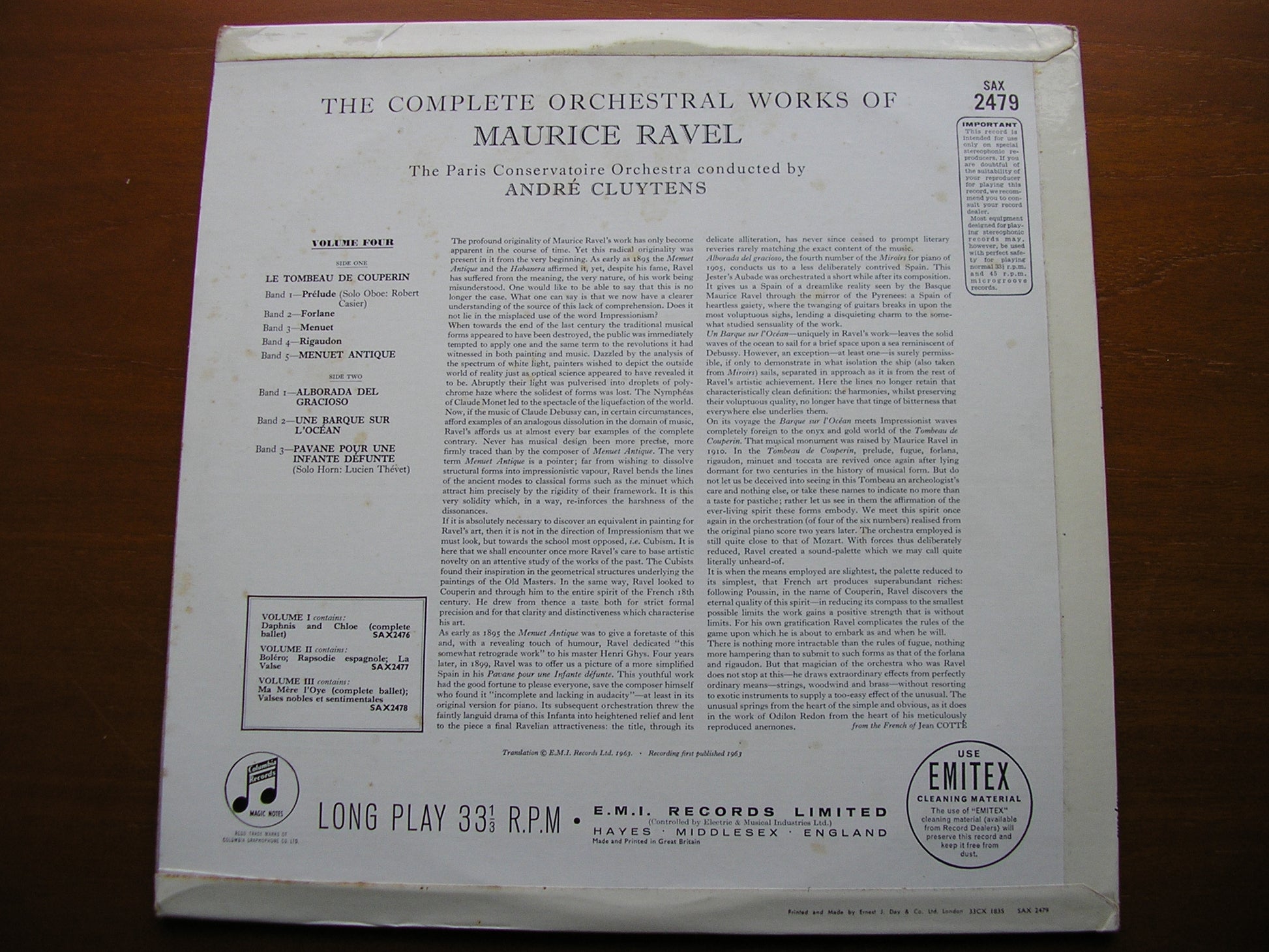 SAX 2479  RAVEL: ALBORADA / UNE BARQUE / LE TOMBEAU DE COUPERIN / PAVANE / MENUET ANTIQUE  ANDRE CLUYTENS / PARIS CONSERVATOIRE ORCHESTRA