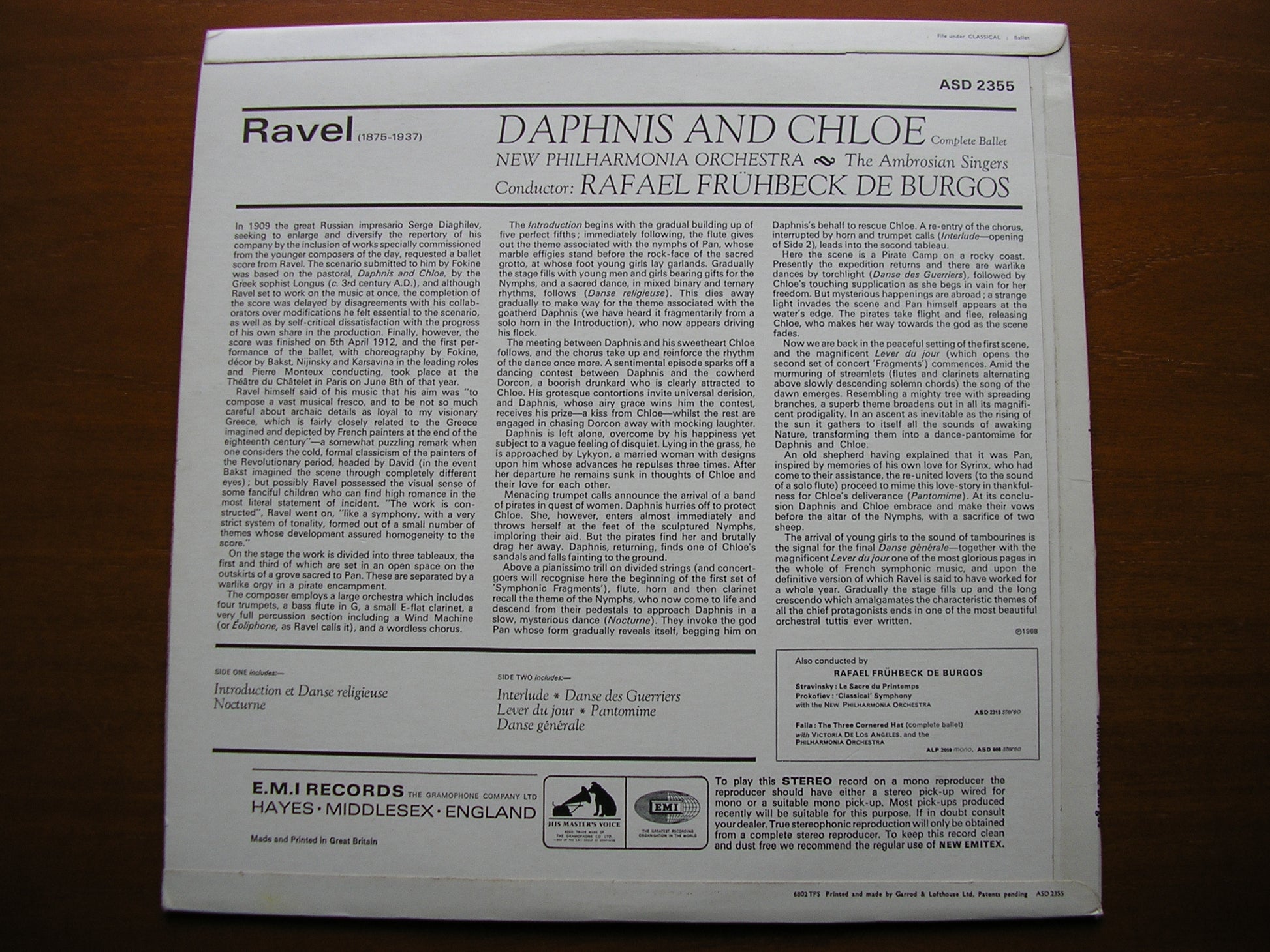 ASD 2355  RAVEL: DAPHNIS & CHLOE    RAFAEL FRUHBECK DE BURGOS / NEW PHILHARMONIA ORCHESTRA