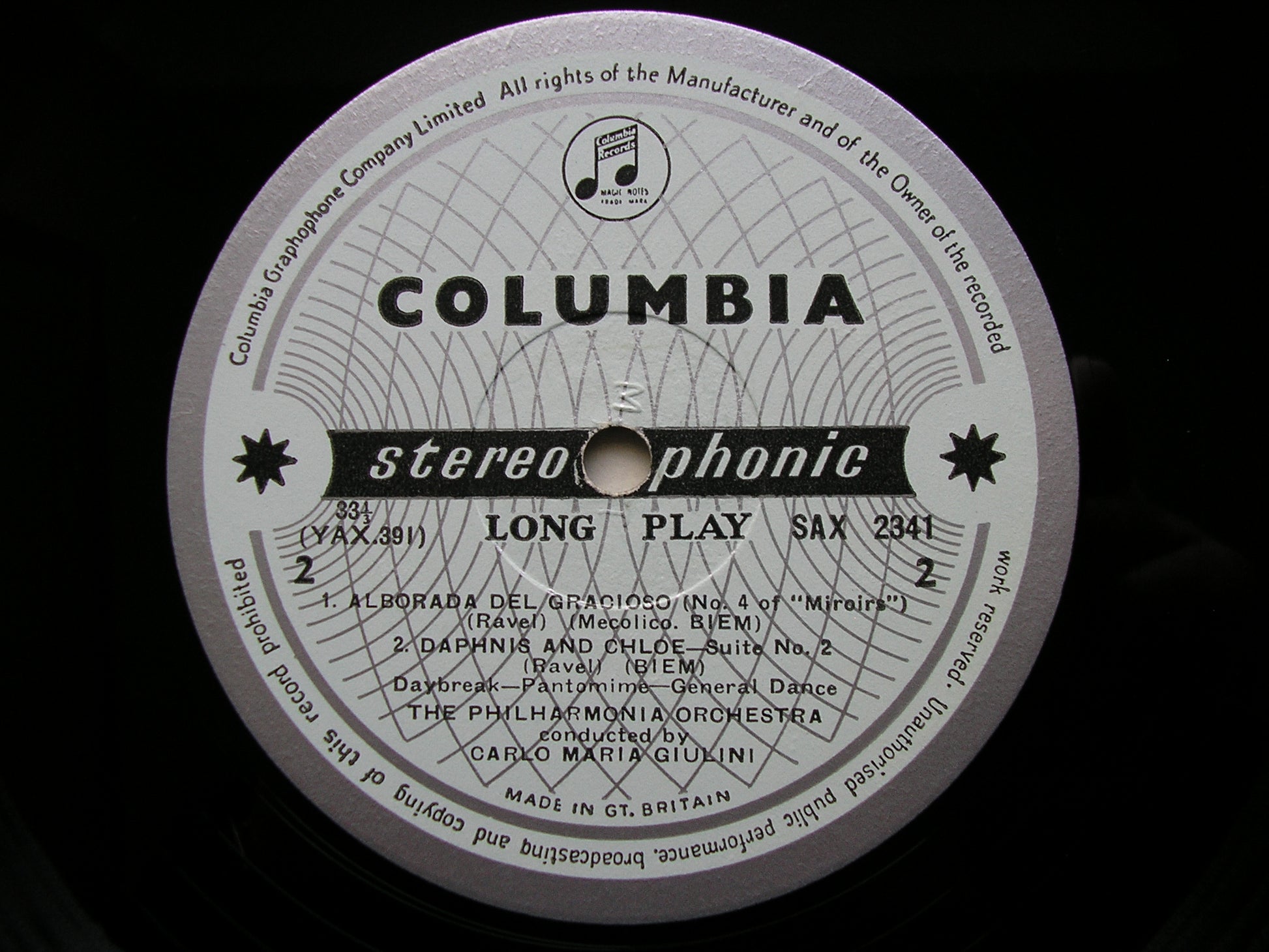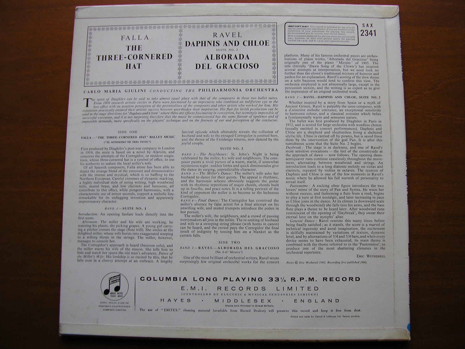 SAX 2341  RAVEL: DAPHNIS & CHLOE Suite No. 2 / ALBORADA DEL GRACIOSO / FALLA: THREE CORNERED HAT    CARLO MARIA GIULINI / PHILHARMONIA ORCHESTRA
