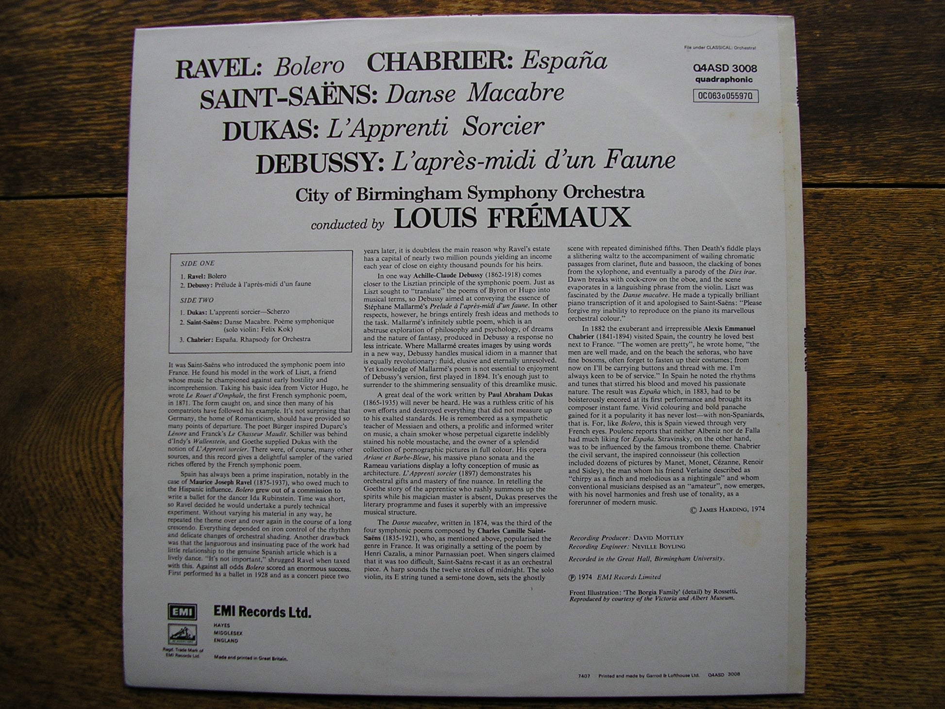 RAVEL/DUKAS/CHABRIER/SAINT-SAENS: ORCHESTRAL WORKS FREMAUX / CITY OF BIRMINGHAM SYMPHONY Q4ASD 3008