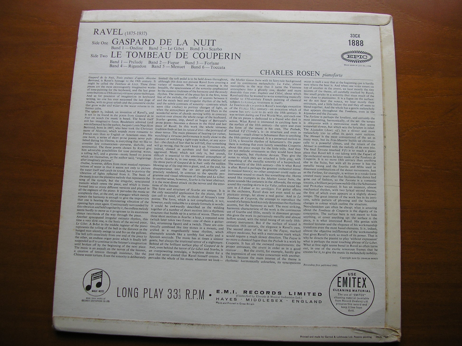 RAVEL: GASPARD DE LA NUIT / TOMBEAU DE COUPERIN CHARLES ROSEN 33CX 1888