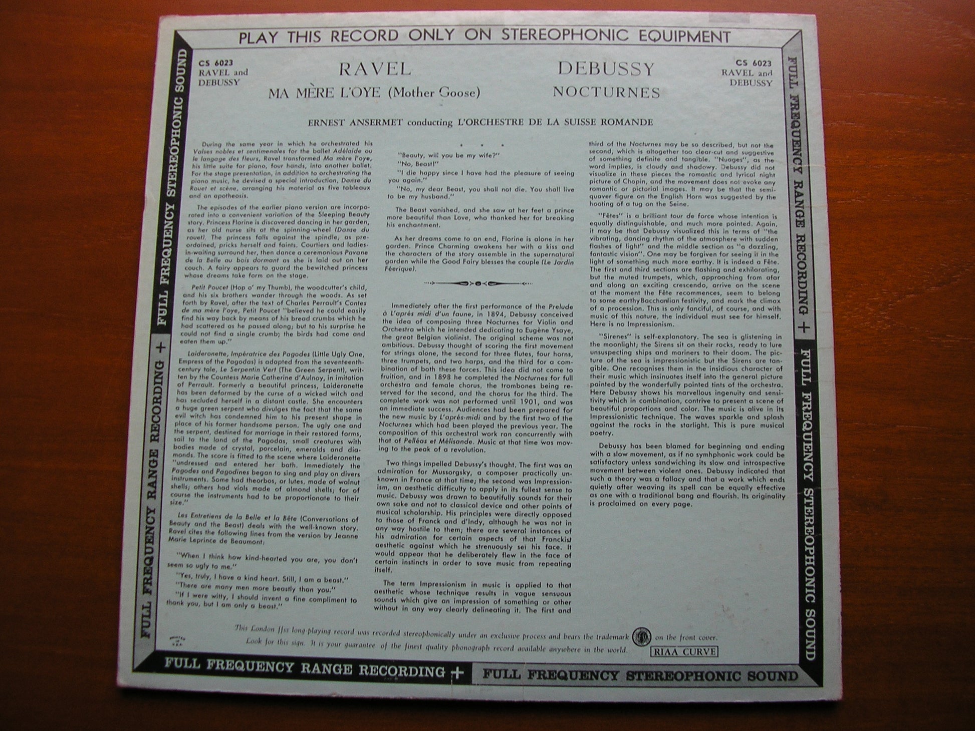 CS 6023  RAVEL: MOTHER GOOSE / DEBUSSY: NOCTURNES   ERNEST ANSERMET / SUISSE ROMANDE ORCHESTRA
