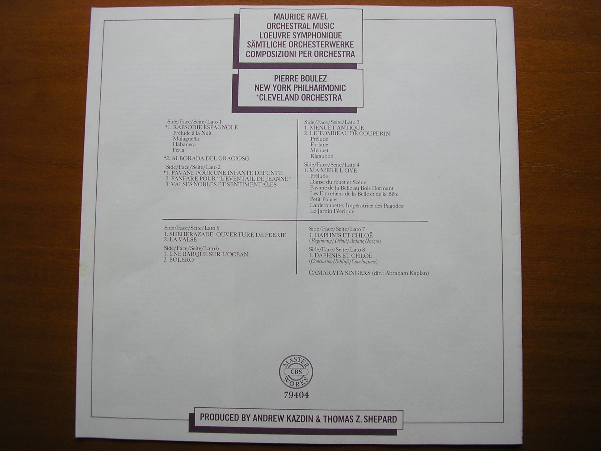 RAVEL: ORCHESTRAL MUSIC PIERRE BOULEZ / CLEVELAND ORCHESTRA / NEW YORK PHILHARMONIC 4LP 79404