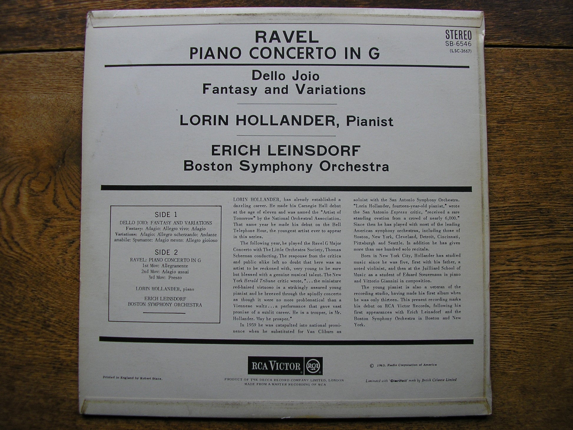 RAVEL: PIANO CONCERTO in G / DELLO JOIO: FANTASY & VARIATIONS HOLLANDER / BOSTON SYMPHONY / LEINSDORF SB 6546