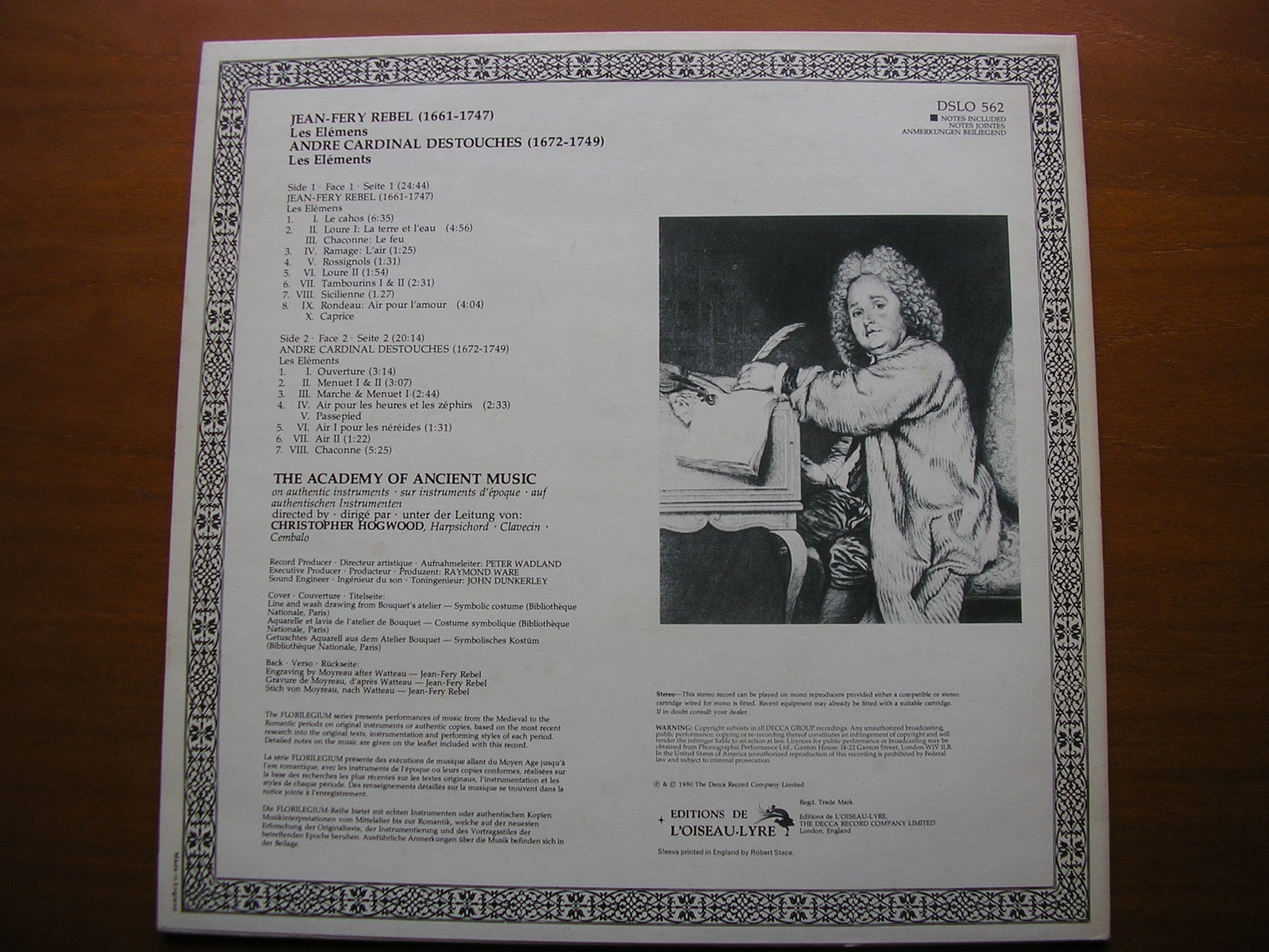 DSLO 562  REBEL:  LES ELEMENTS / DESTOUCHES: LES ELEMENTS     THE ACADEMY OF ANCIENT MUSIC / CHRISTOPHER HOGWOOD