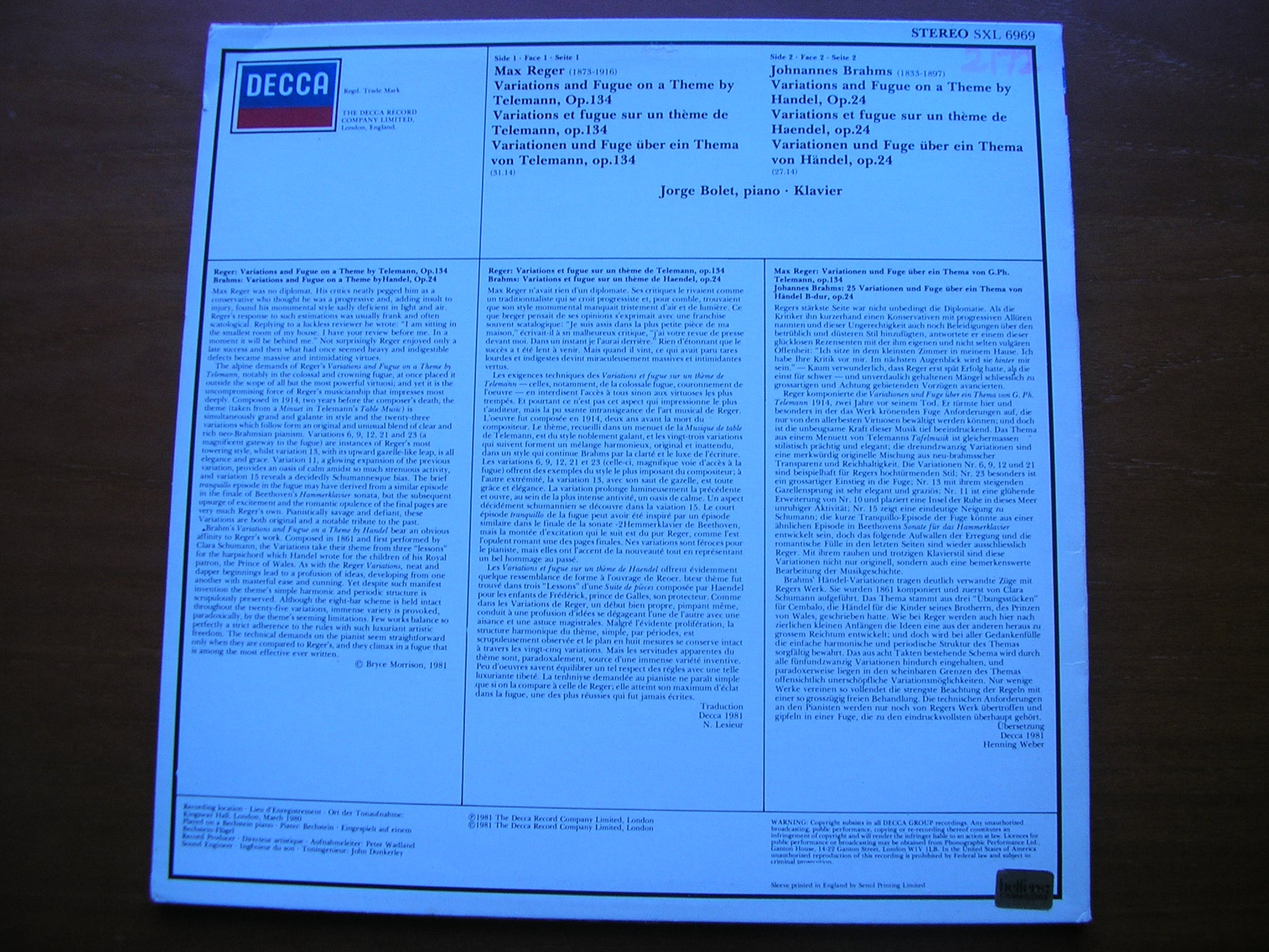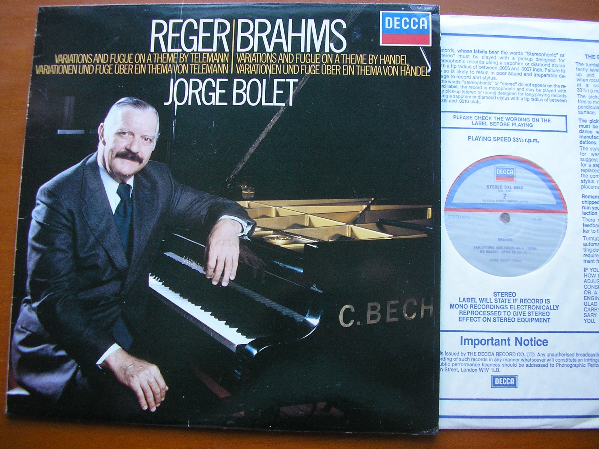 REGER: TELEMANN VARIATIONS Op. 134 / BRAHMS: HANDEL VARIATIONS Op. 24 JORGE BOLET SXL 6969