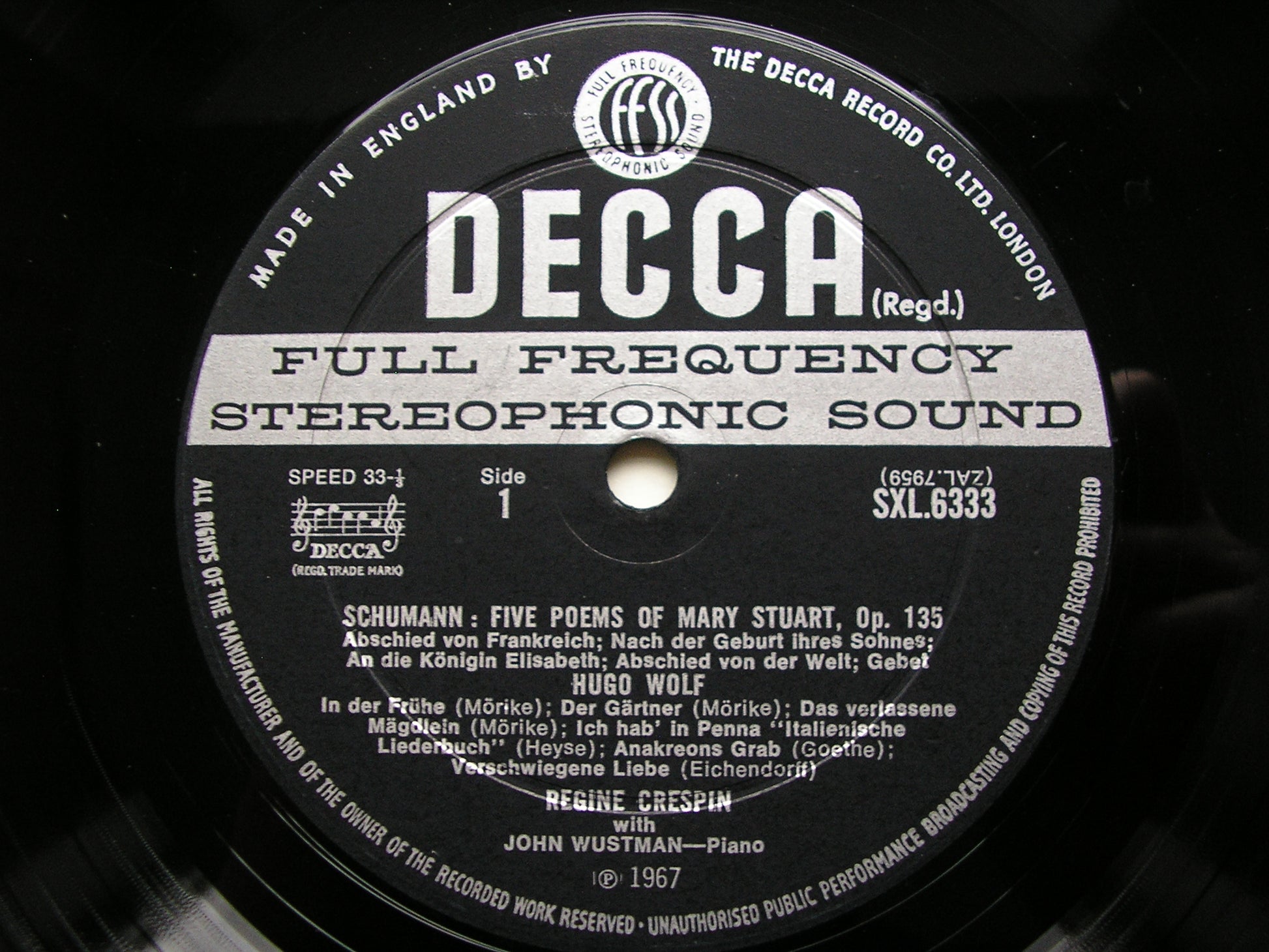 SXL 6333  SONG RECITAL: SCHUMANN / WOLF / DEBUSSY / POULENC     REGINE CRESPIN / JOHN WUSTMAN, piano