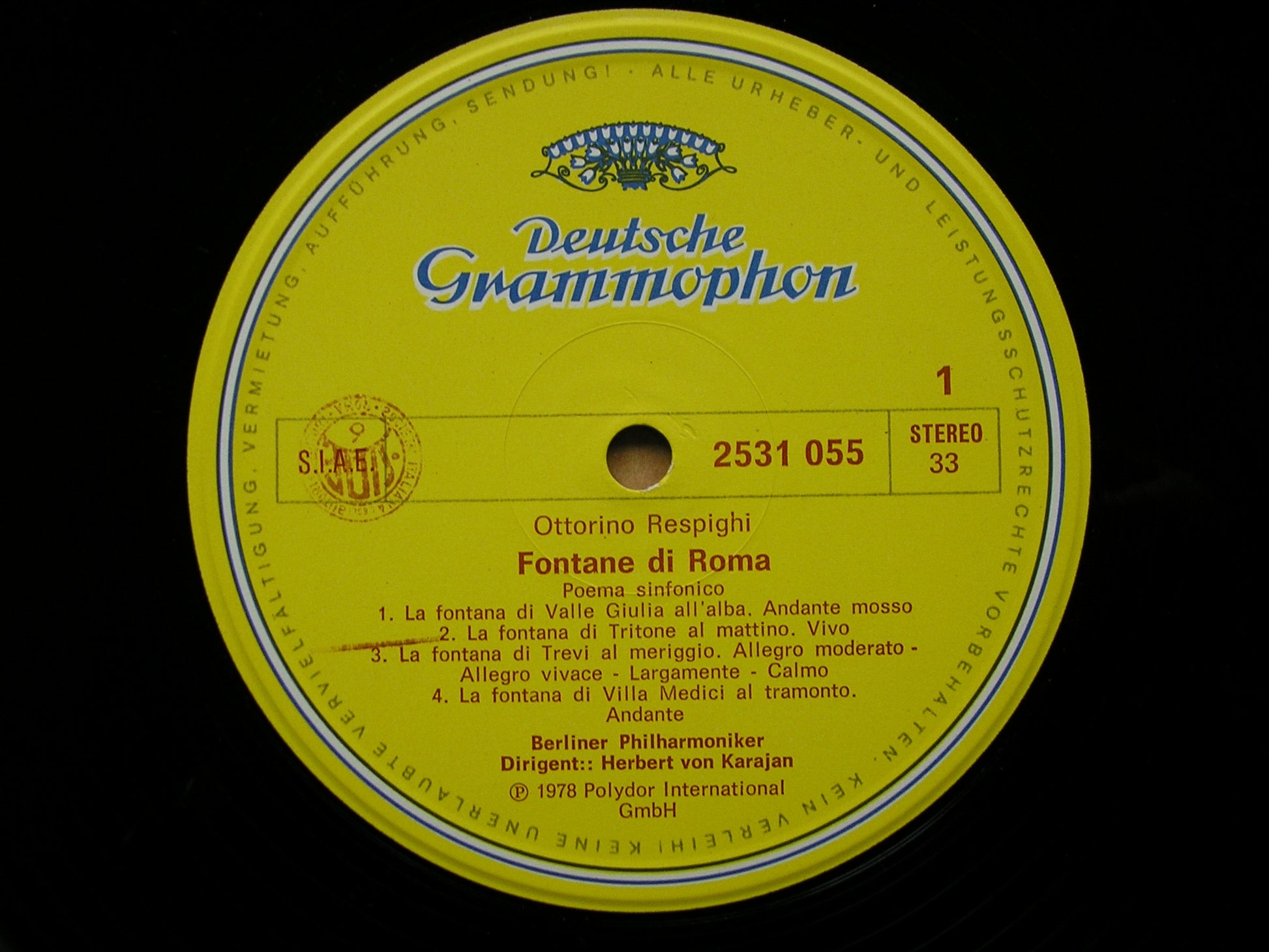 2531 055  RESPIGHI: PINES OF ROME / FOUNTAINS OF ROME   HERBERT VON KARAJAN / BERLIN PHILHARMONIC ORCHESTRA