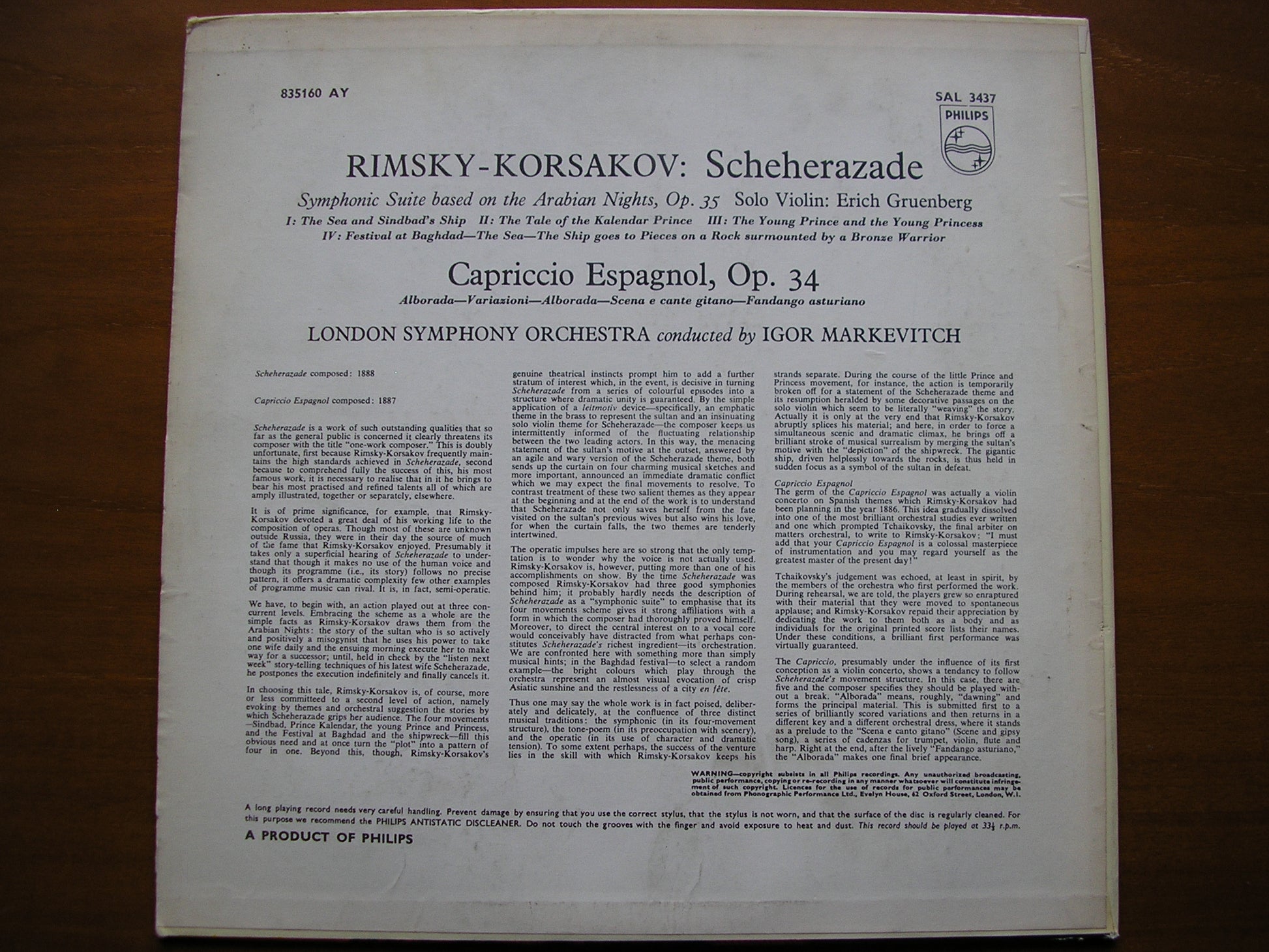 SAL 3437  RIMSKY-KORSAKOV: SCHEHERAZADE / CAPRICCIO ESPAGNOL    IGOR MARKEVITCH / LONDON SYMPHONY ORCHESTRA