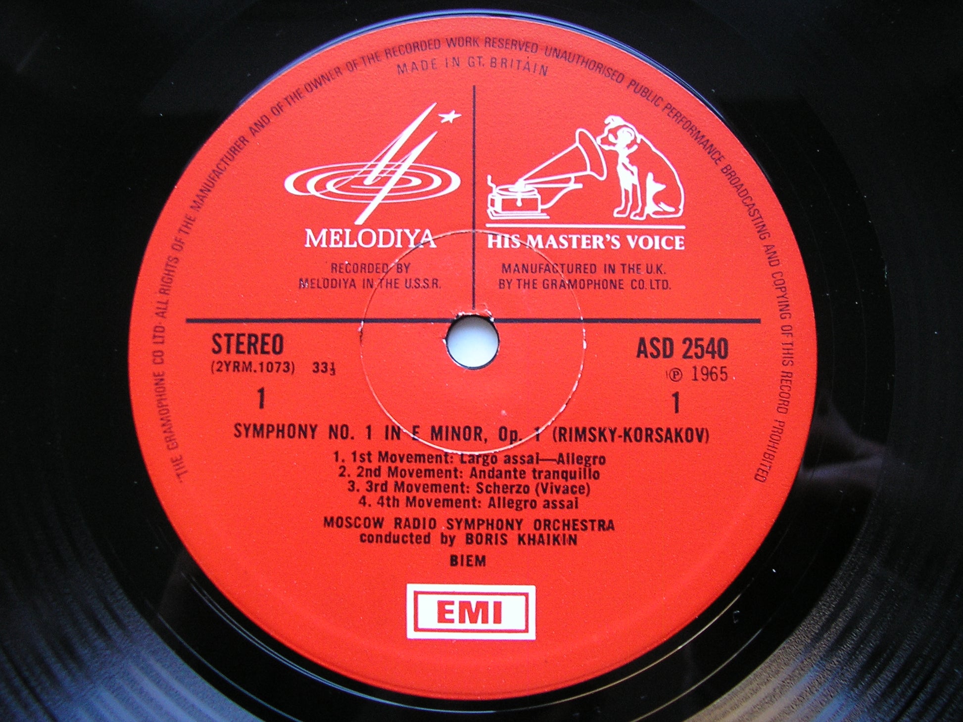 ASD 2540  RIMSKY-KORSAKOV: SYMPHONY No. 1 / GLAZOUNOV: SYMPHONY No. 5   BORIS KHAIKIN / MOSCOW RADIO SYMPHONY / KONSTANTIN IVANOV / USSR SYMPHONY ORCHESTRA