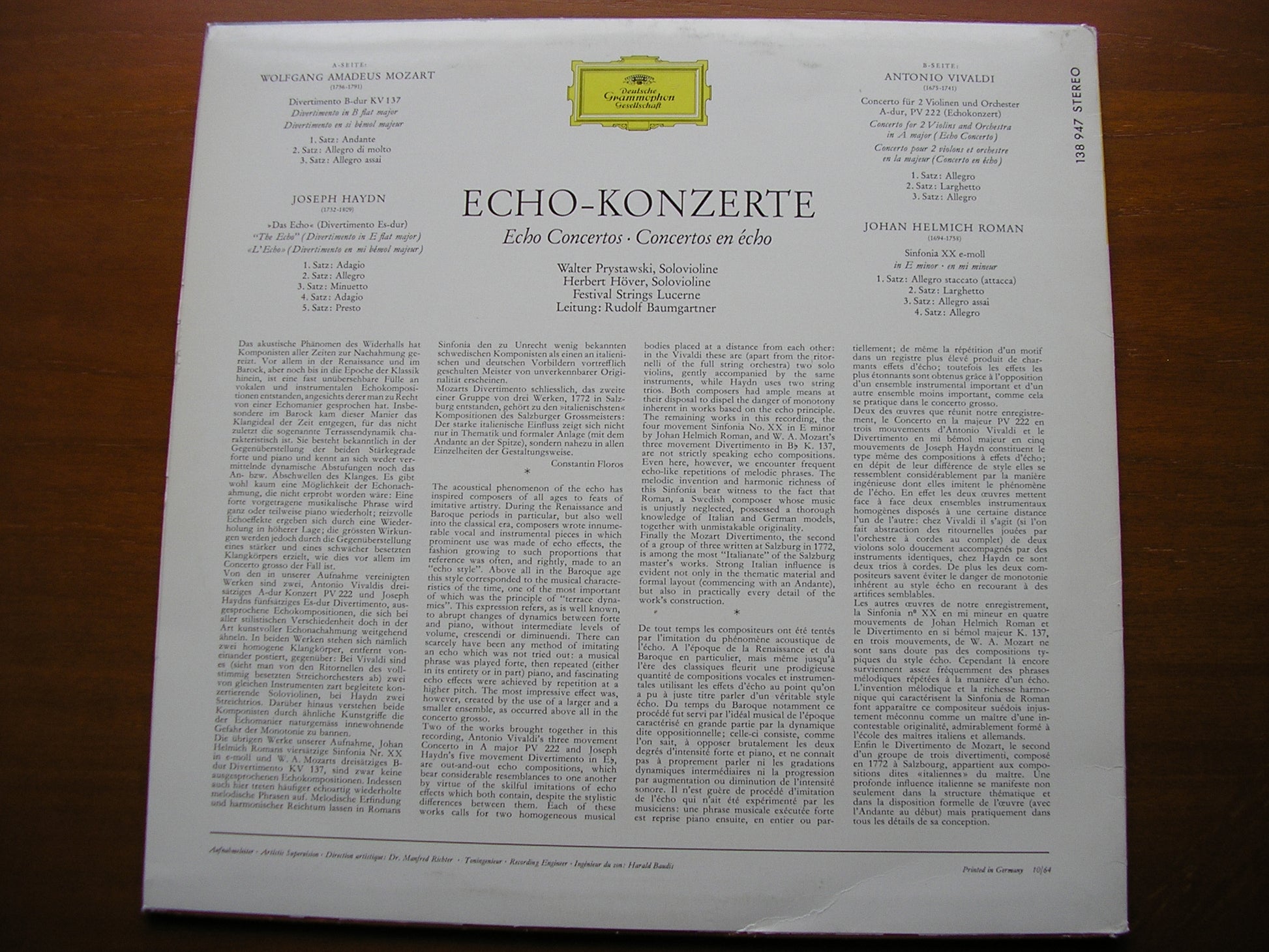 138 947  ROMAN / VIVALDI / HAYDN / MOZART: ECHO CONCERTOS     RUDOLF BAUMGARTNER / LUCERNE FESTIVAL STRINGS